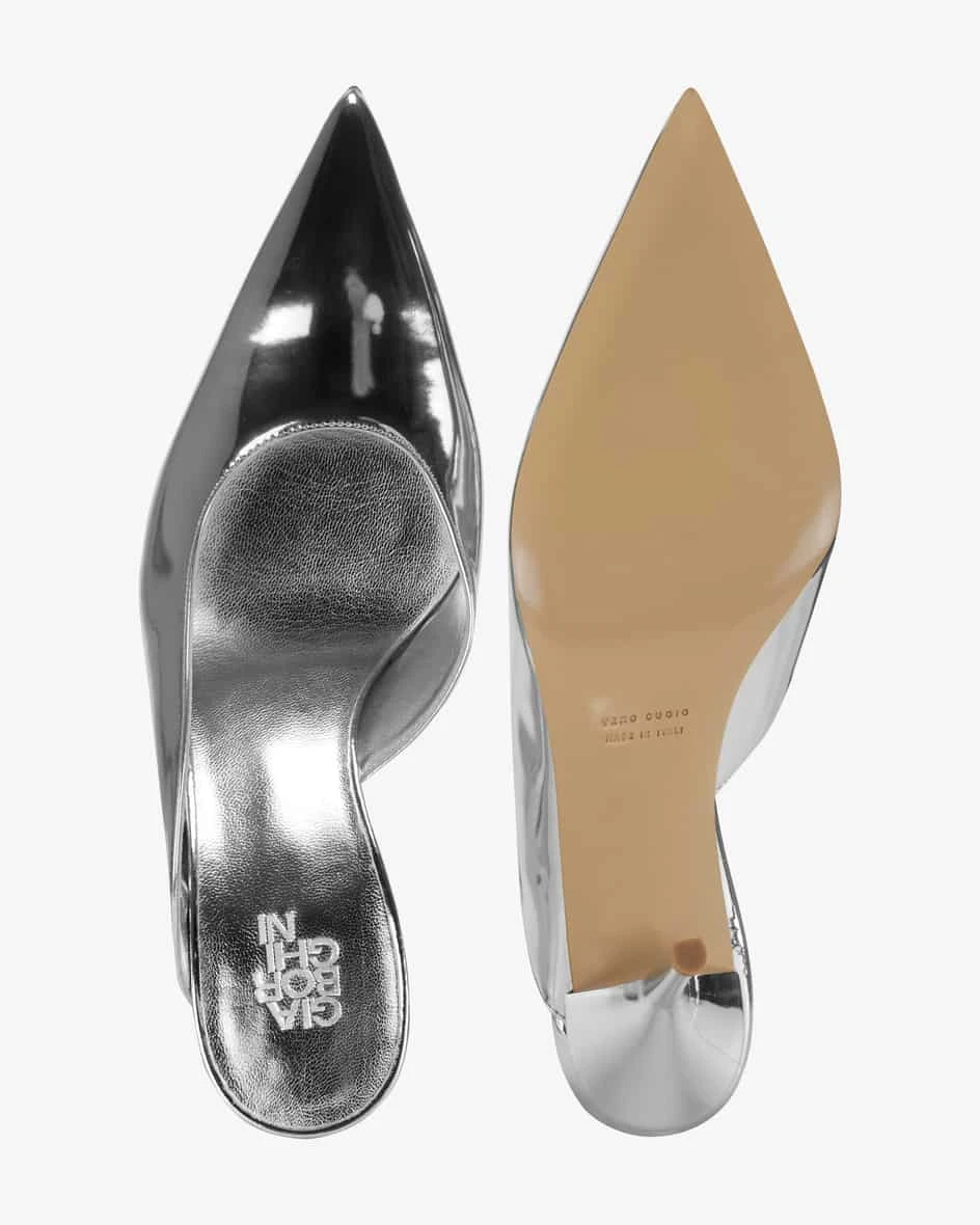 Abella Mules für Damen von Giaborghini in Silber. Feminin präsentiert sich der