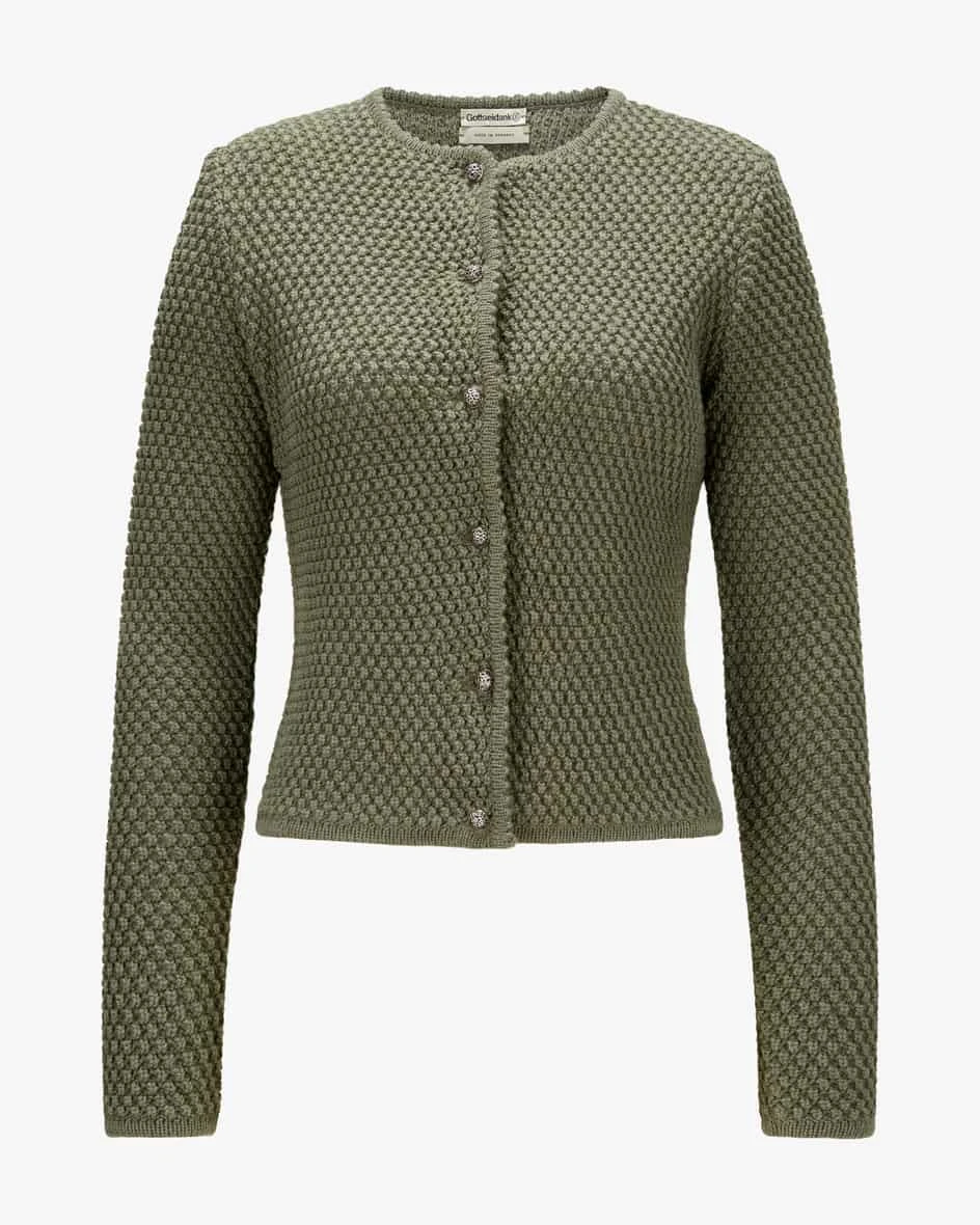 Agnes Trachten-Strickjacke für Damen von Gottseidank in Khaki. Für ein