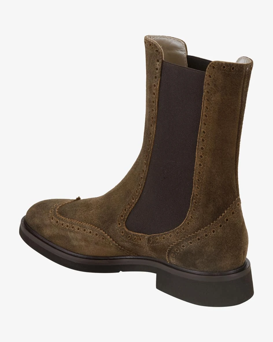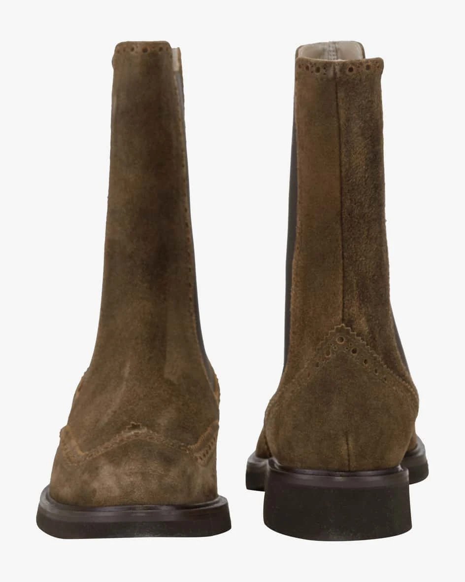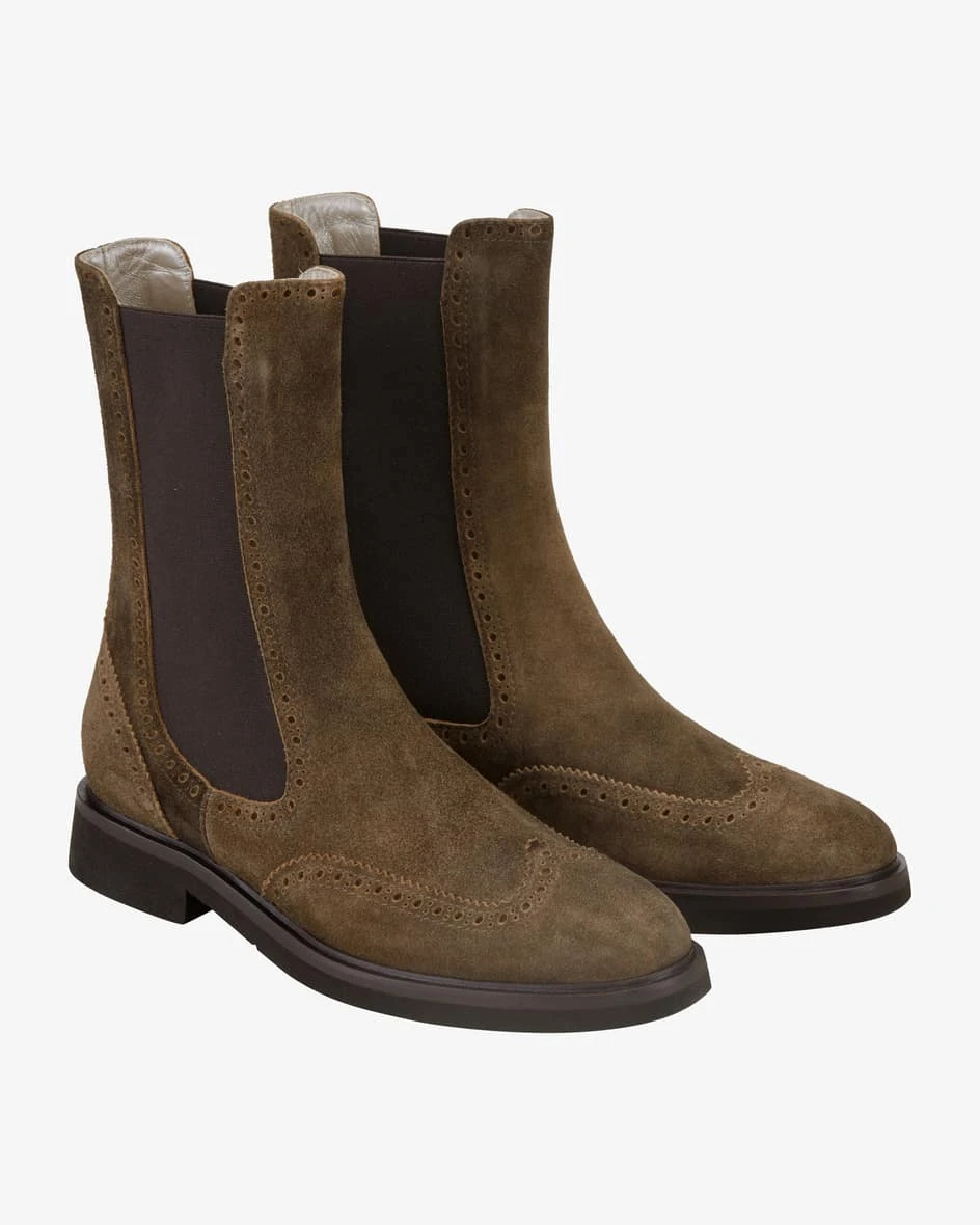 Modell aus hochwertigem Veloursleder besticht dank den Lochmuster-Details mit