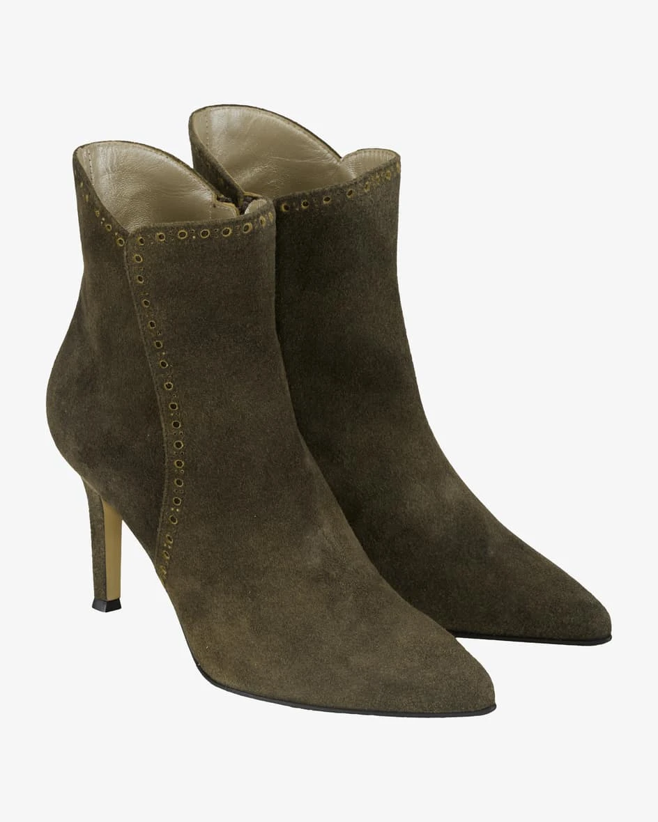 schlichte Modell aus hochwertigem Veloursleder besticht dank dem Budapester-