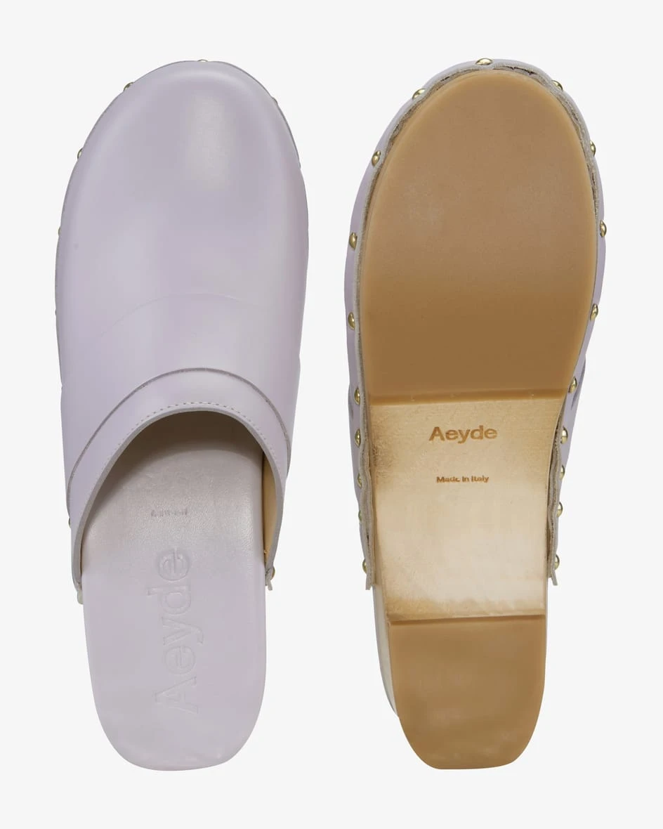 Bibi Pantoletten für Damen von Aeyde in Flieder. Das Modell aus hochwertigem