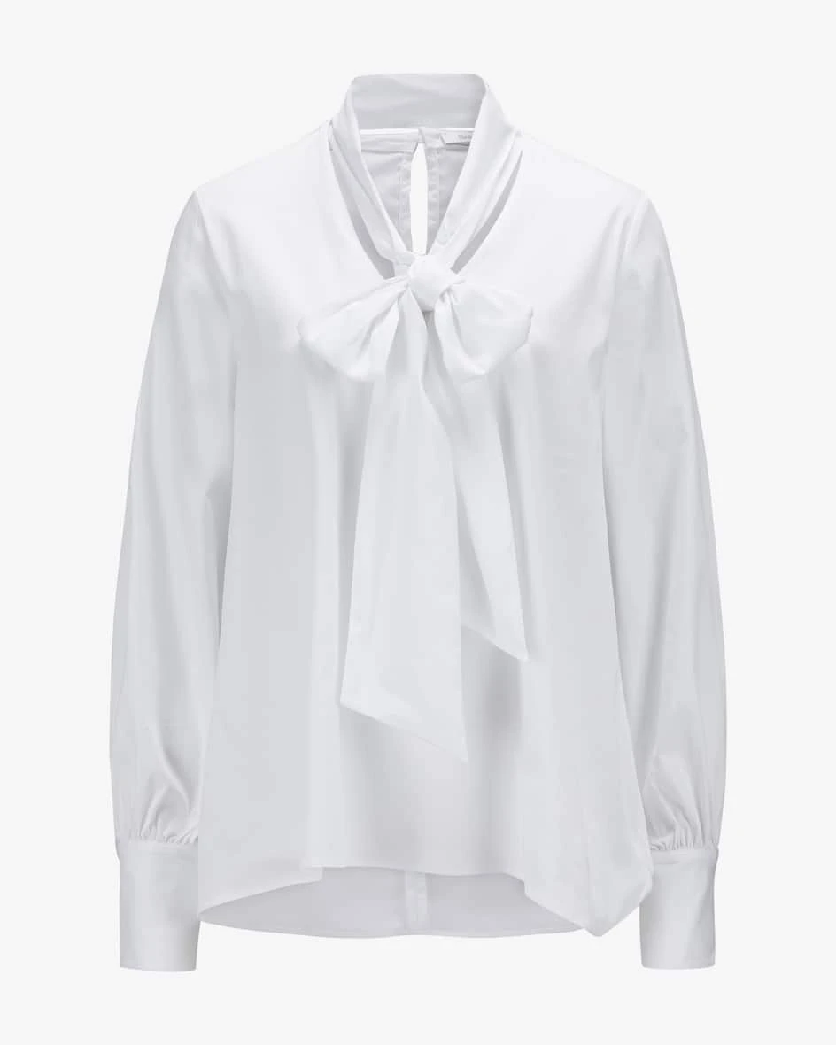 Bluse für Damen von Soluzione in Weiß. Das Modell erreicht durch die Jersey-