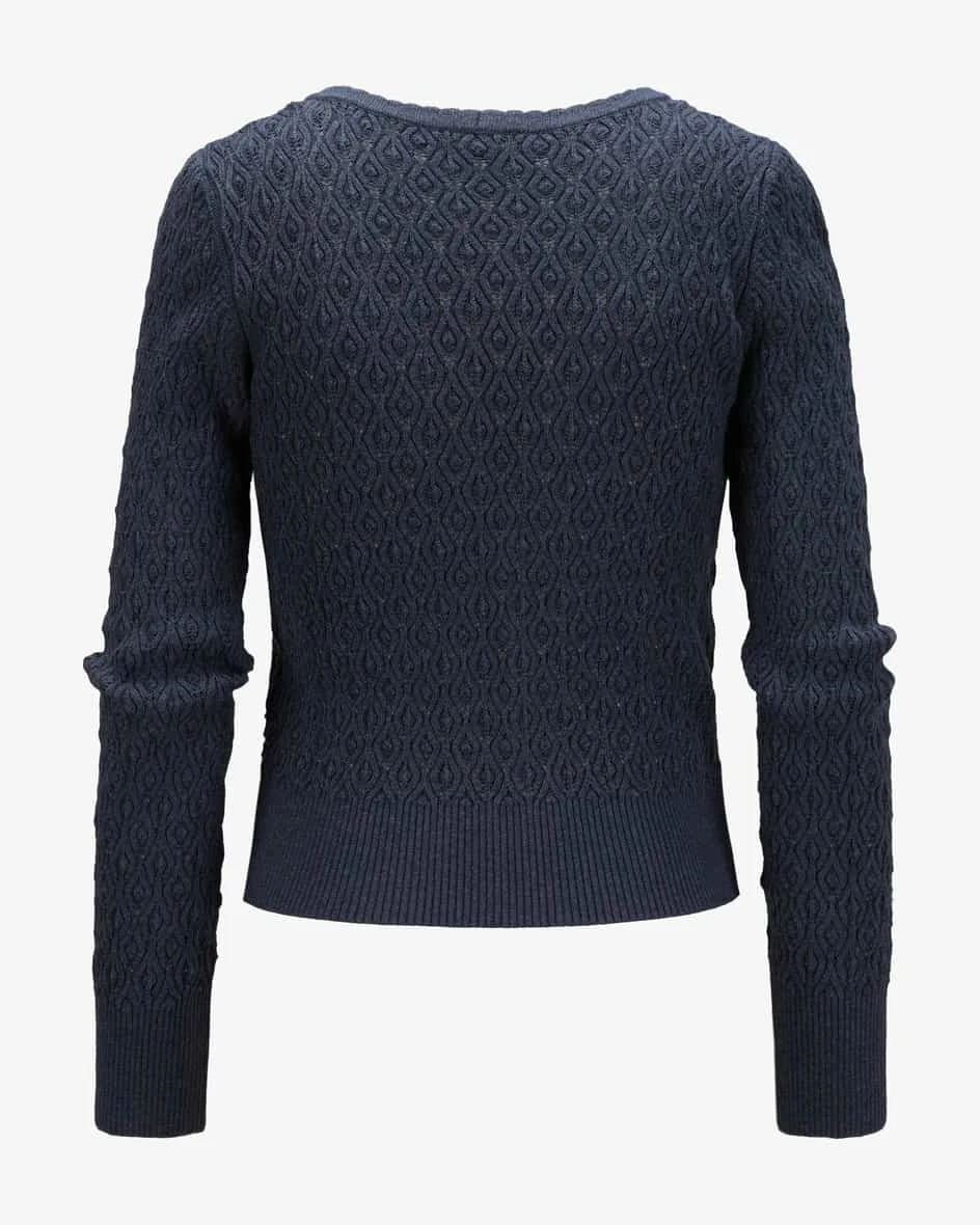 Strick-Muster sowie Knöpfe mit floralem Dessin untermalen die traditionelle