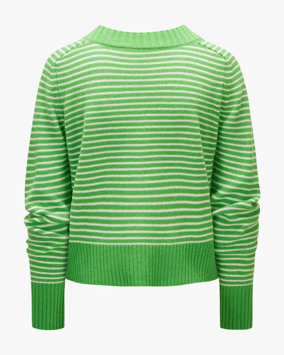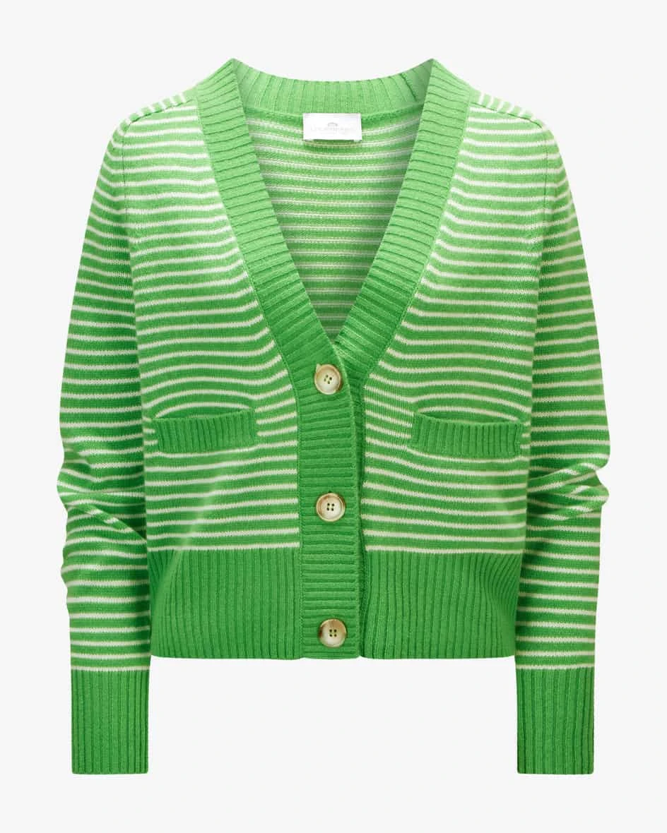 Cashmere-Strickjacke für Damen von LODENFREY in Grün und Off-White. Das Modell