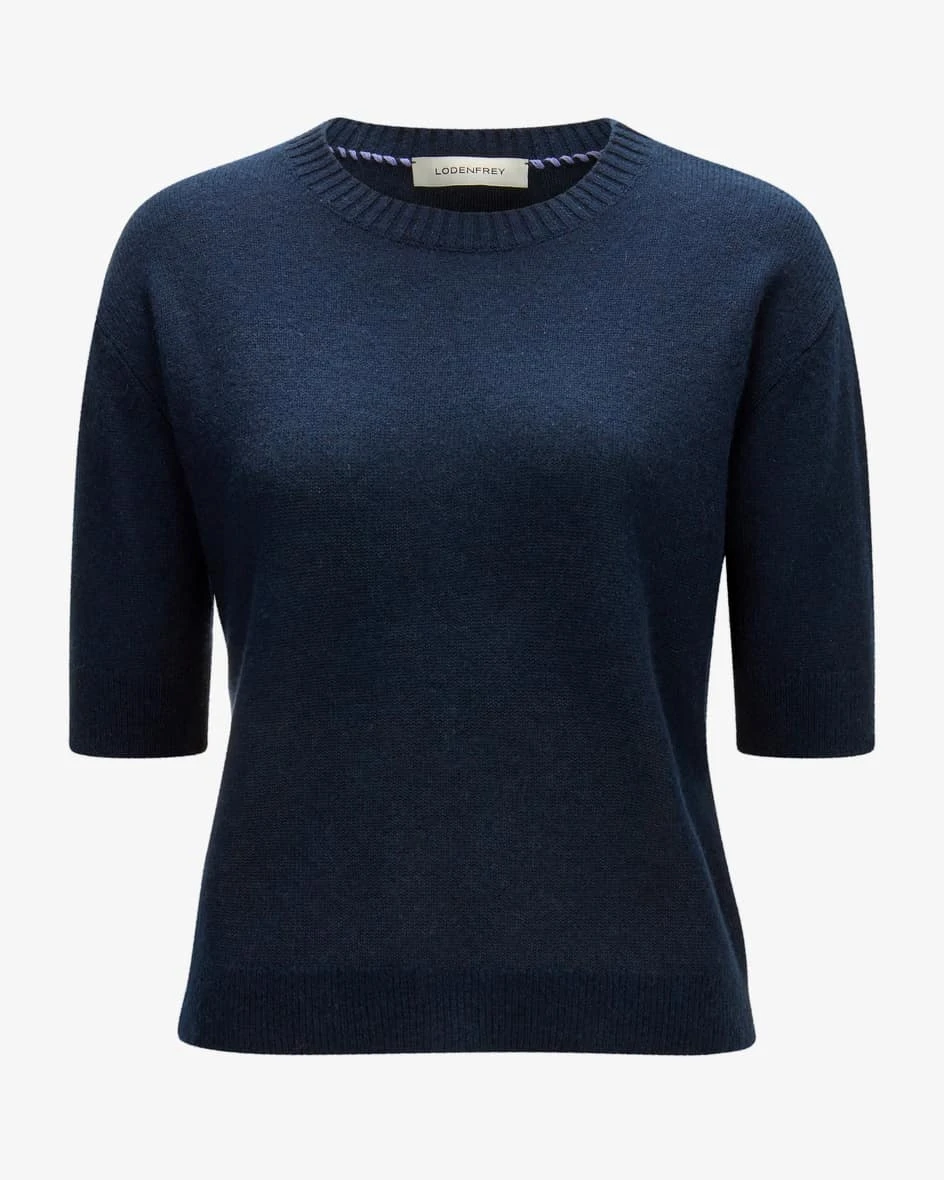 Cashmere-Strickshirt für Damen von LODENFREY in Nachtblau. Das Kurzarm-Modell