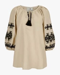 Cococabane Leinenbluse für Damen von Citrus Fashion in Beige und Schwarz. Neben