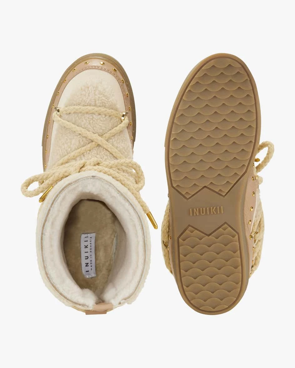 Curly Rock Boots für Damen von Inuikii in Beige und Gold. Zeitloses Design in