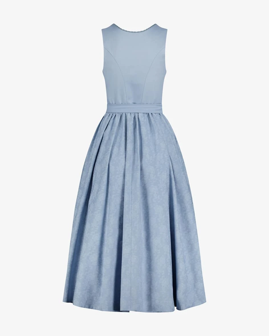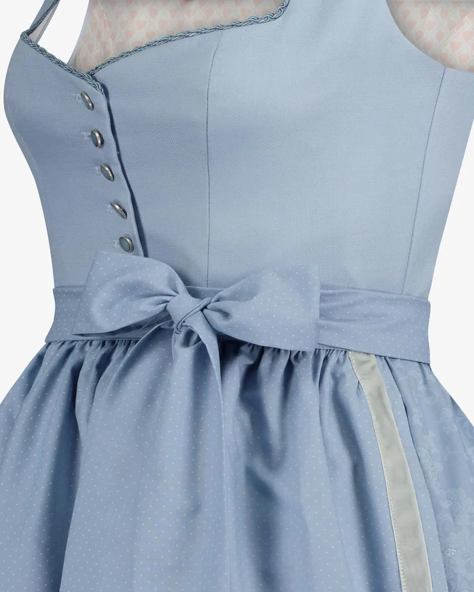 Dirndl lang mit Schürze für Damen von Silk & Pearls in Hellblau. Das Modell