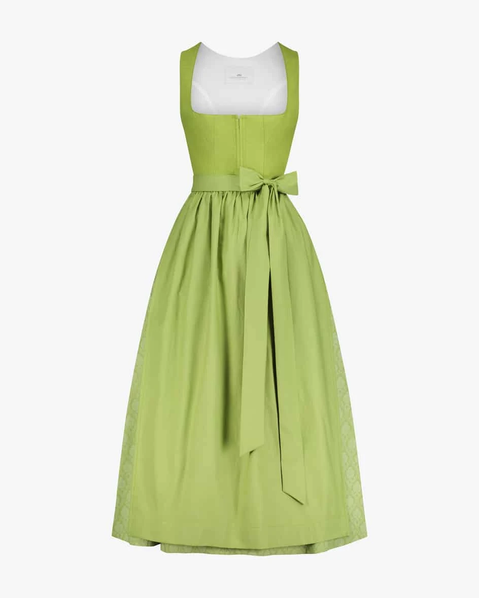 Dirndl lang mit Schürze für Damen von LODENFREY in Hellgrün. Kreation aus dem