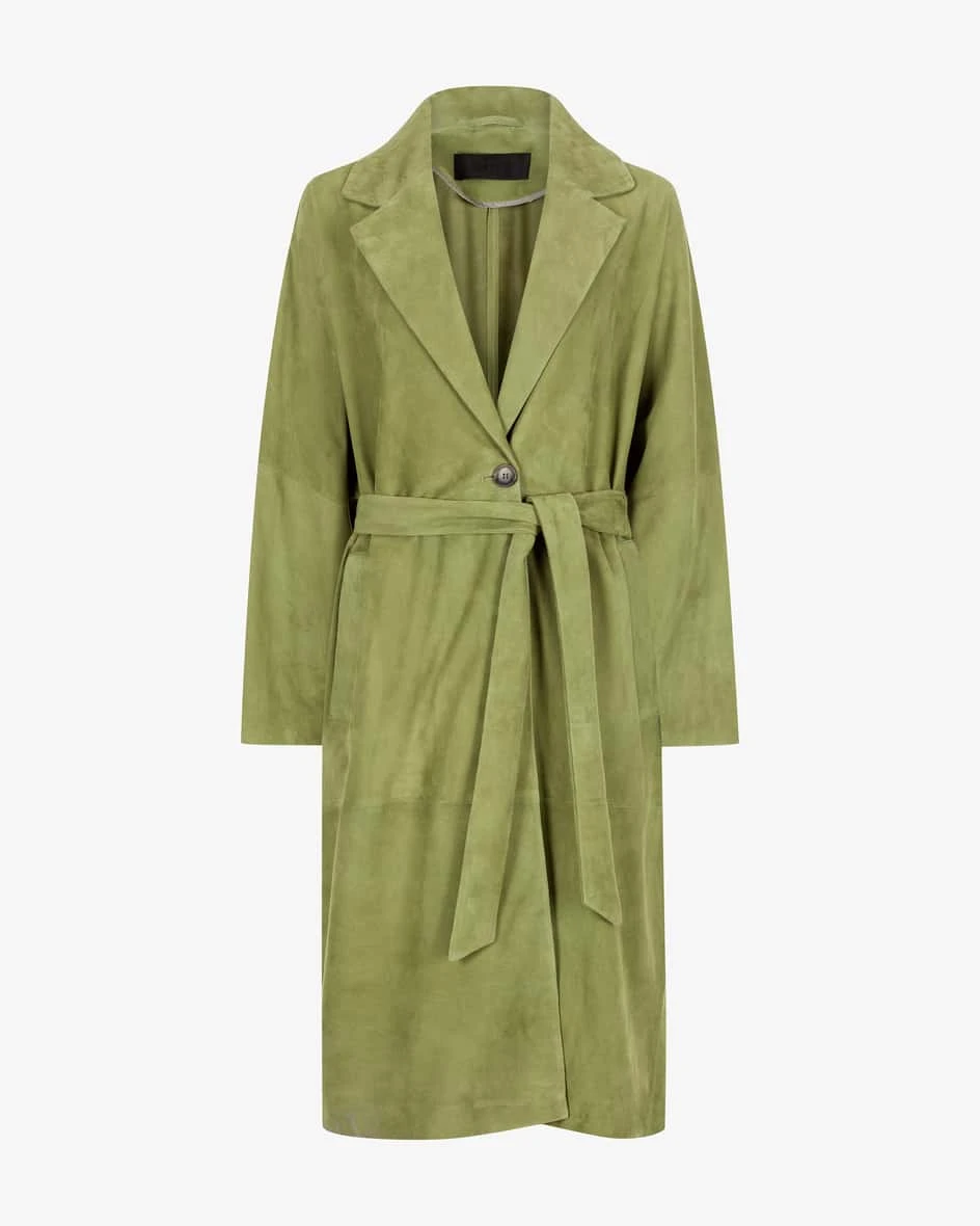 Domus Ledermantel für Damen von Nove in Grün. Das cleane Modell überzeugt dank
