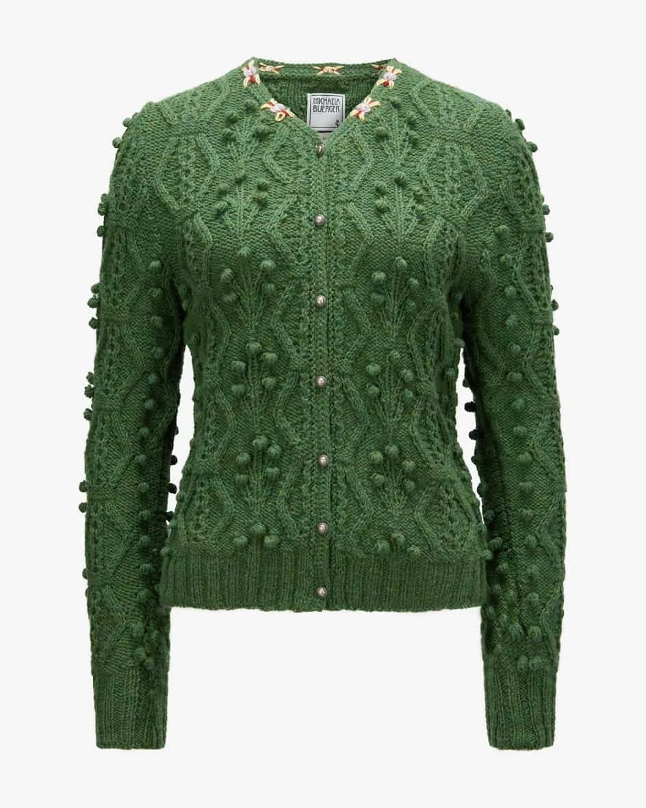 Finny Trachten-Strickjacke für Damen von Michaela Buerger in Dunkelgrün. Die