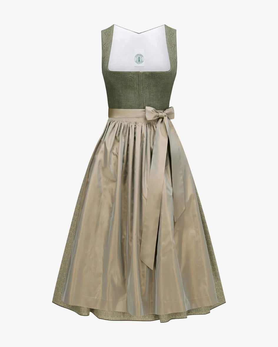 Geli Midi-Dirndl mit Seidenschürze für Damen von Tostmann in Schilf. Trachten-