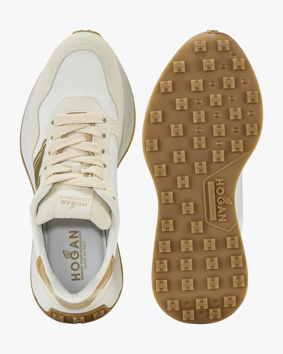 H641 Sneaker für Damen von Hogan in Weiß, Creme und Gold. Das Label legt größten