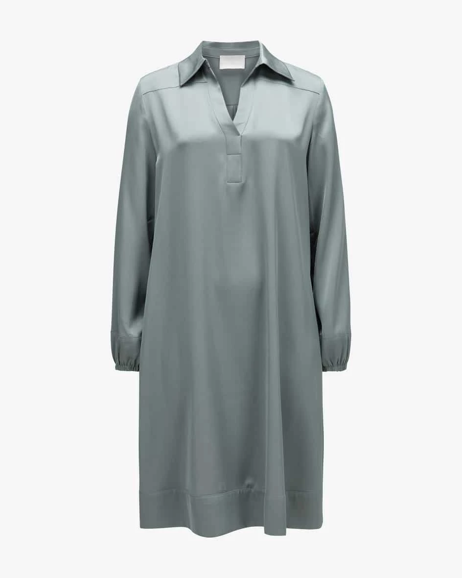 Seiden-Qualität erhält das Modell einen edlen Touch, während die weite Passform
