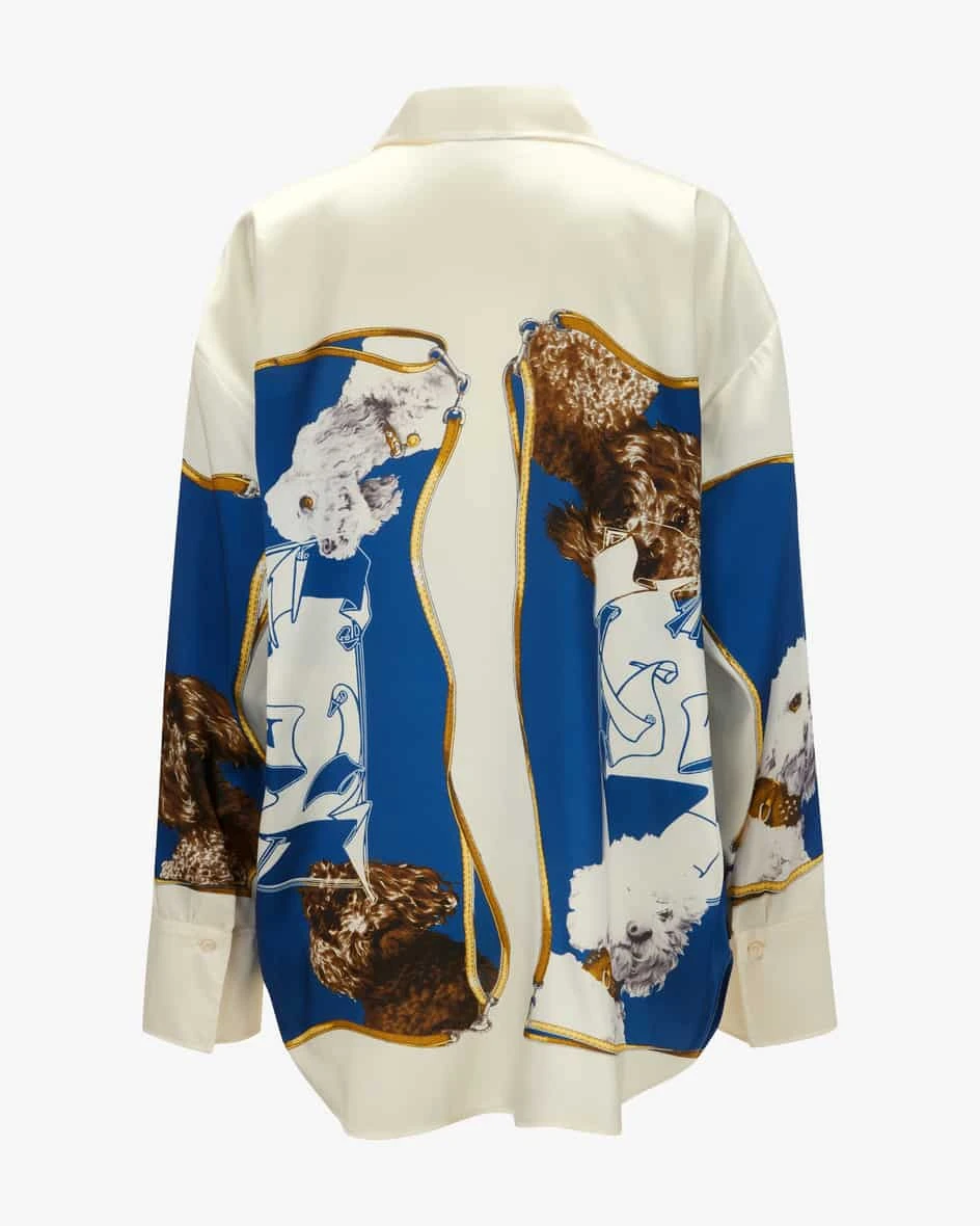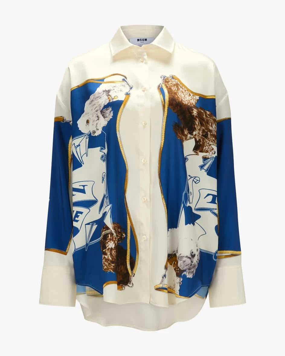 Hemdbluse für Damen von MSGM in Creme und Blau. Das changierende Oversize-Modell