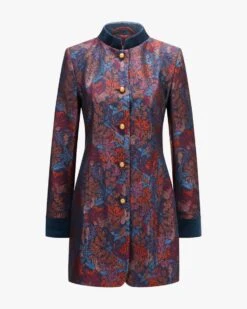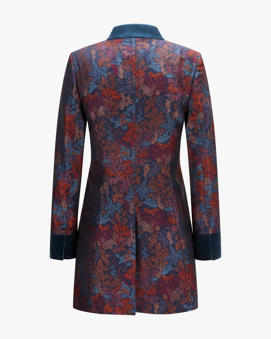 seine elegante Aufmachung, während Kugelknöpfe sowie Samt-Details traditionelle