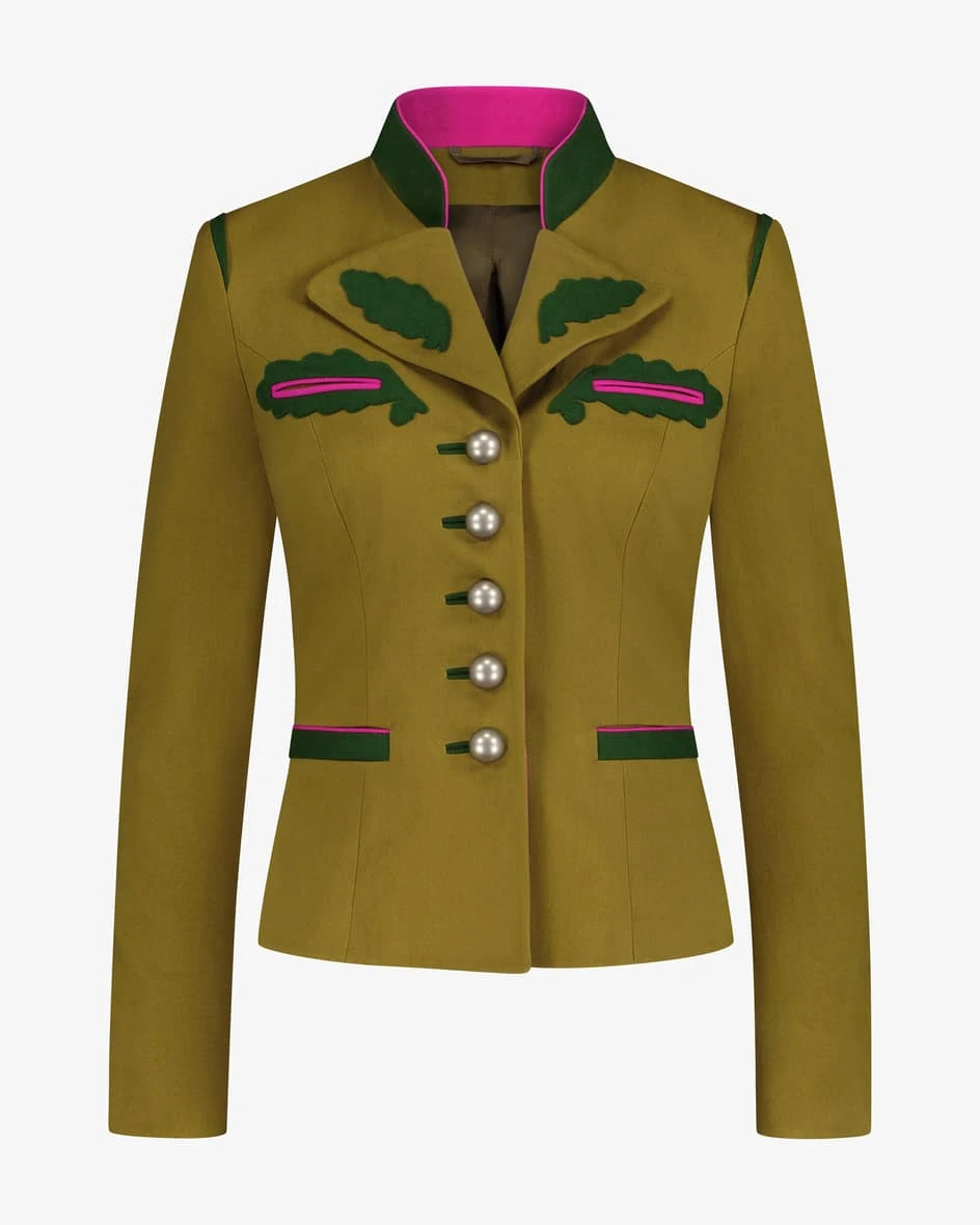 Ischl Trachten-Blazer für Damen von Stajan in Khaki. Made in Austria – Aus