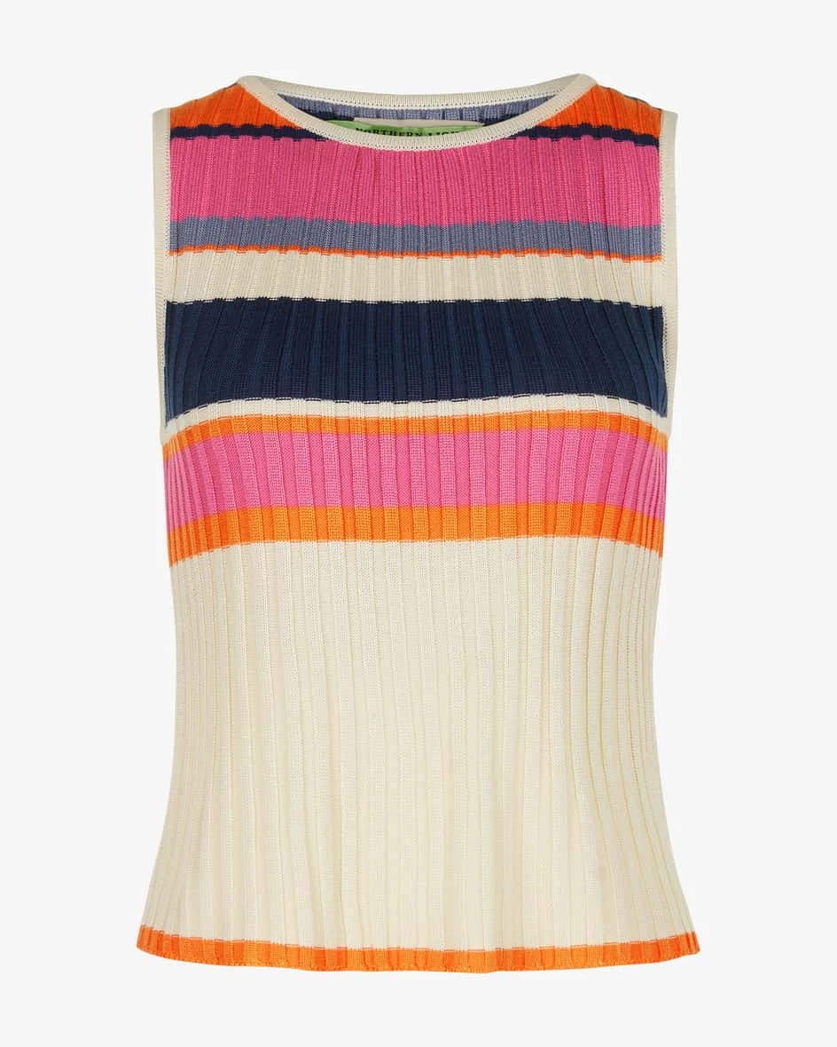 Kaia Stricktop für Damen von Chufy in Bunt und Sand. Das Modell avanciert dank