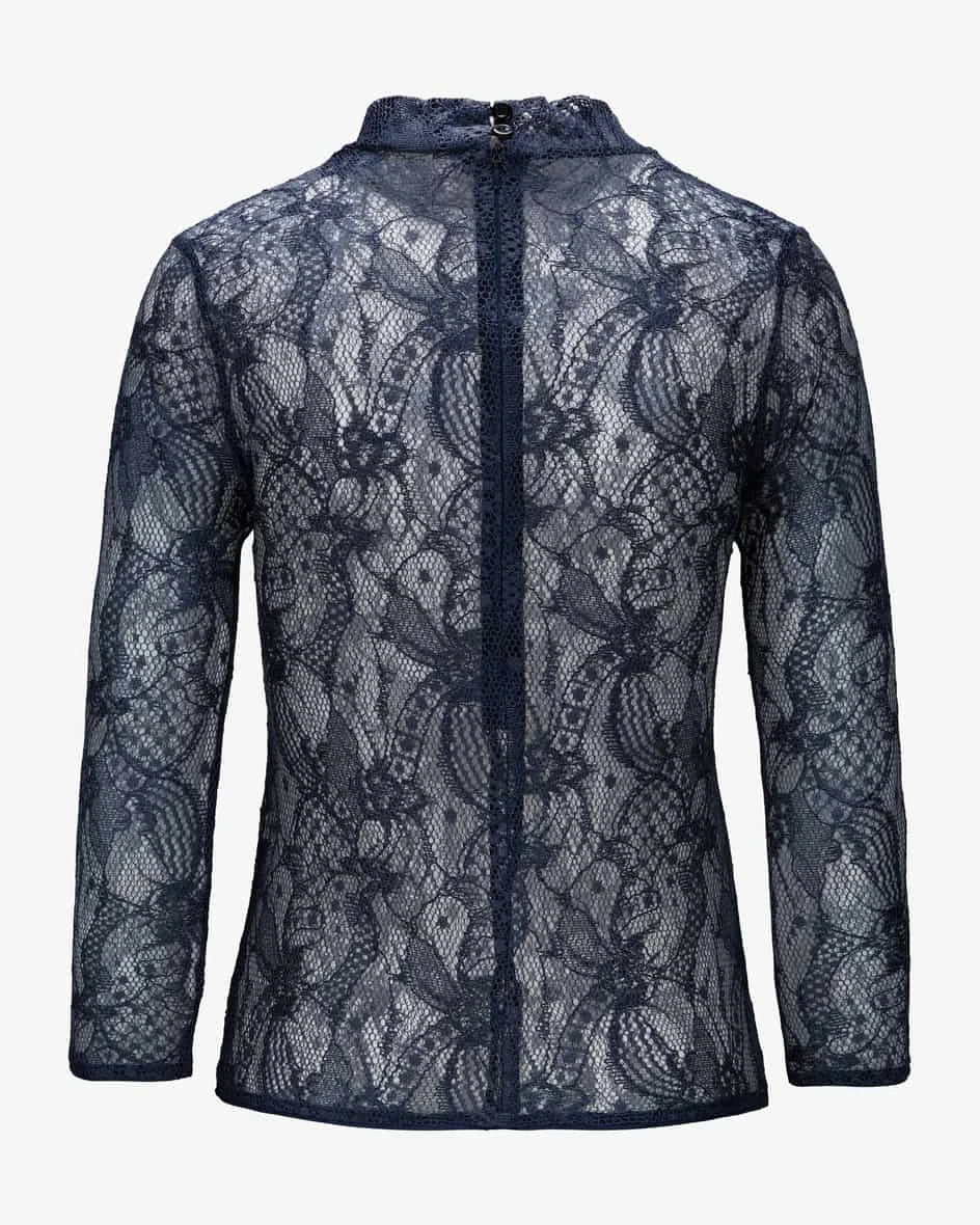 Lina Spitzenbluse für Damen von Kinga Mathe in Navy. Das taillierte,