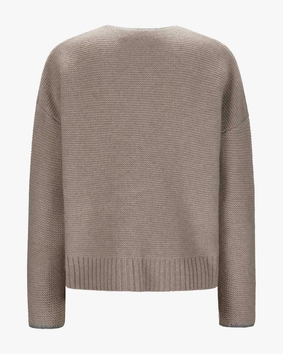 weichem Griff, während das feine Strick-Muster, modische Kontrastpaspeln sowie