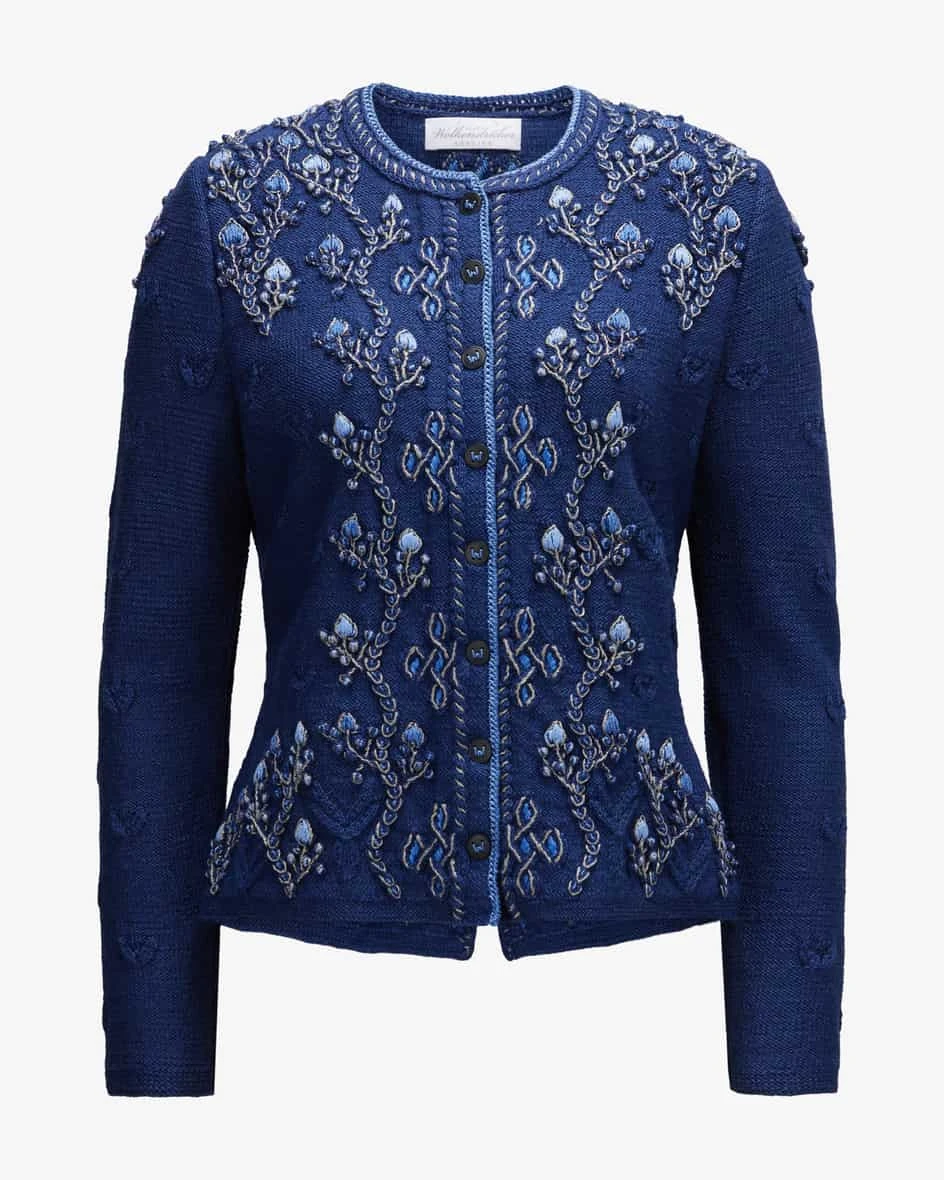 Mary Trachten-Strickjacke für Damen von Wolkenstricker in Blau. Das Modell