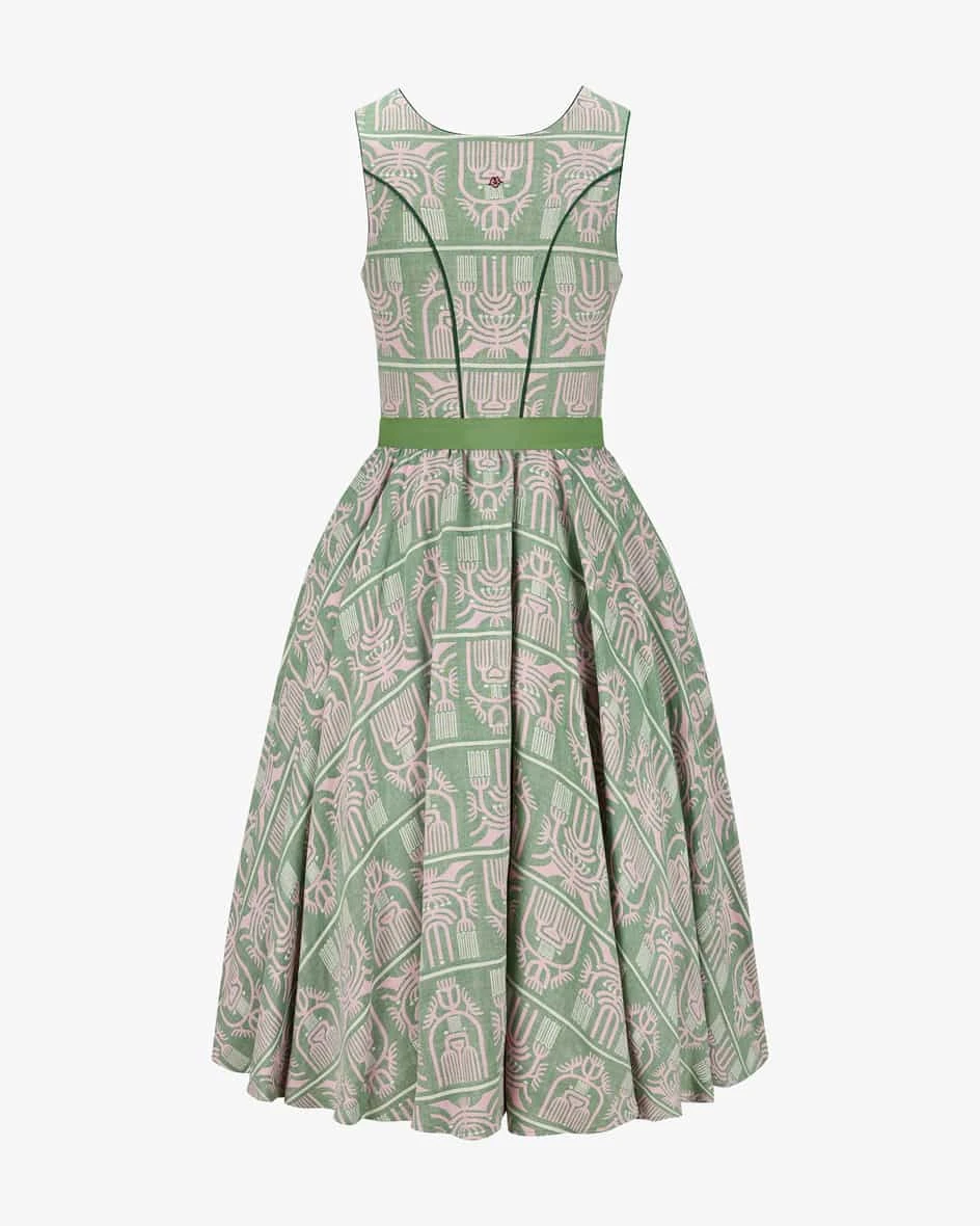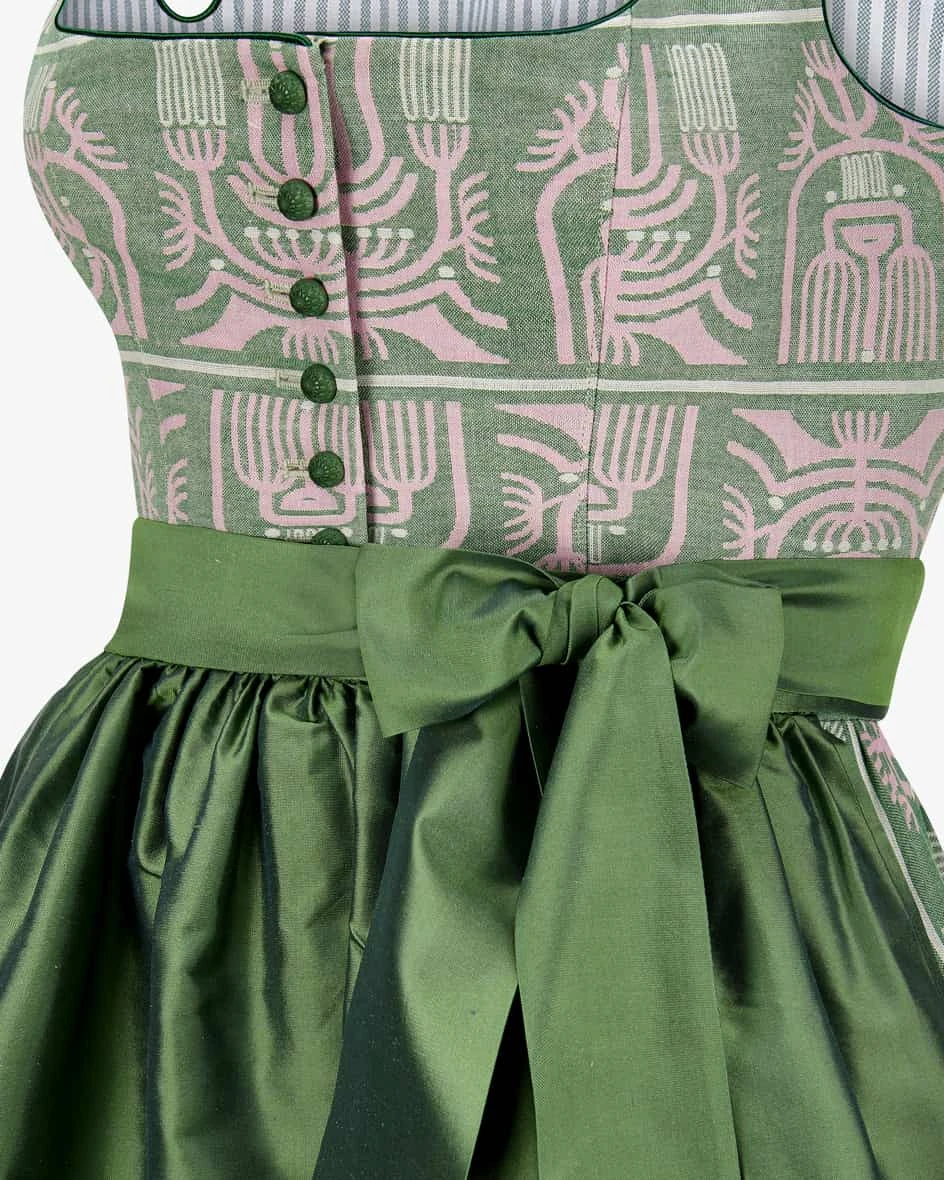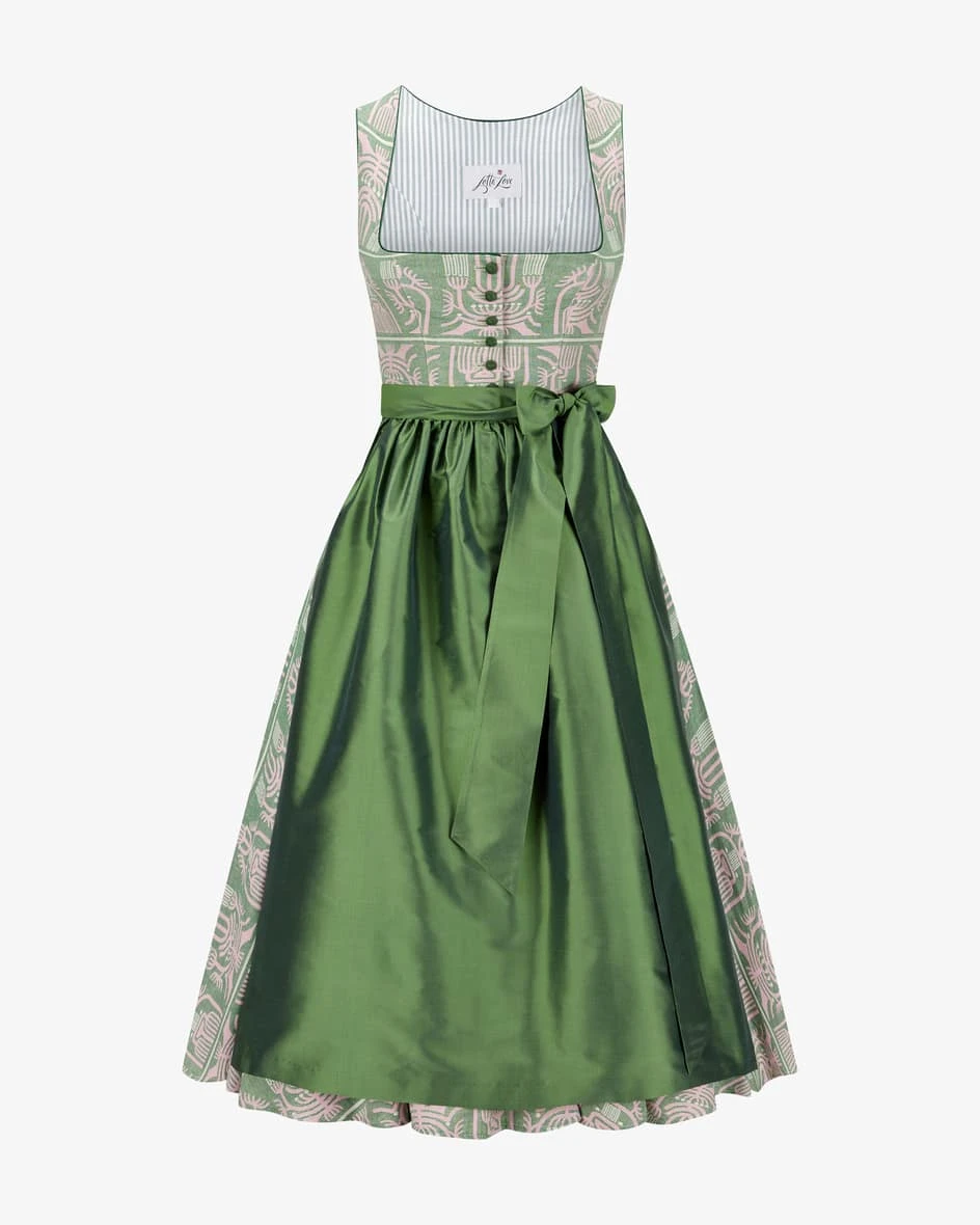 Midi-Dirndl mit Seidenschürze für Damen von Lotta Leben in Grün und Pink. Das