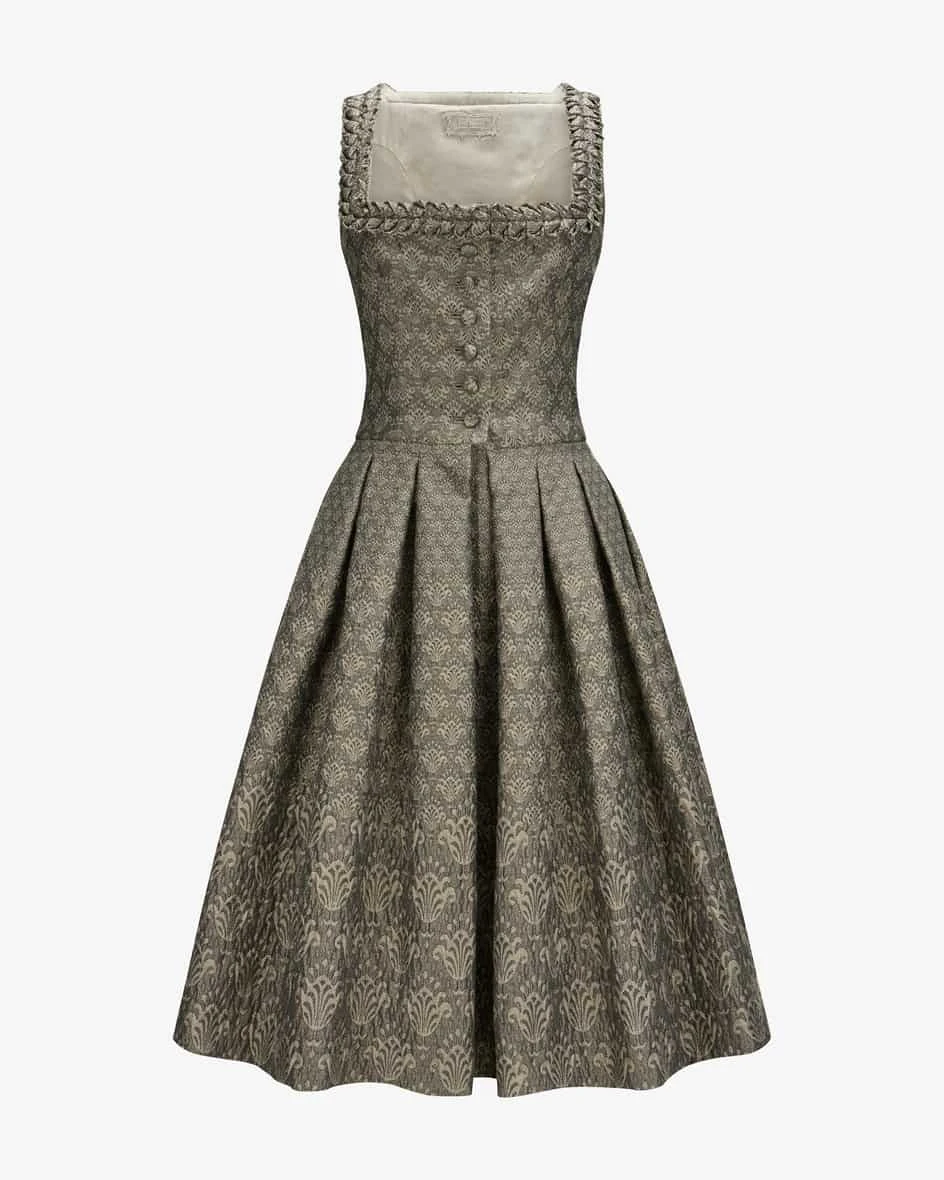 Midi-Dirndl für Damen von Mothwurf in Taupe und Gold. Das Trachtenmodehaus aus