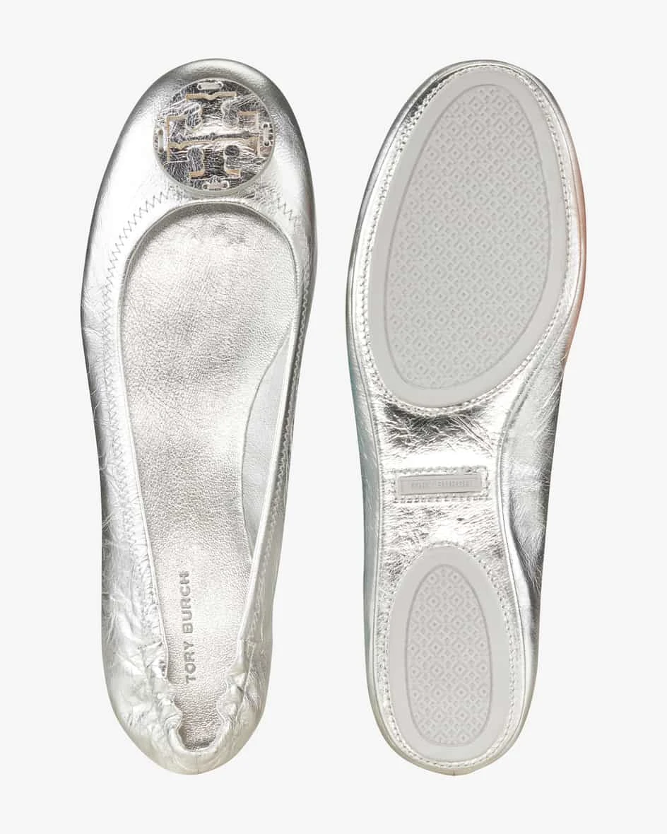 Minnie Travel Ballerinas für Damen von Tory Burch in Silber. Das Modell besticht