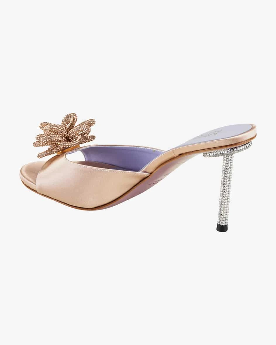 Strassstein-Applikationen entlang des Absatzes und auf der Front als femininer