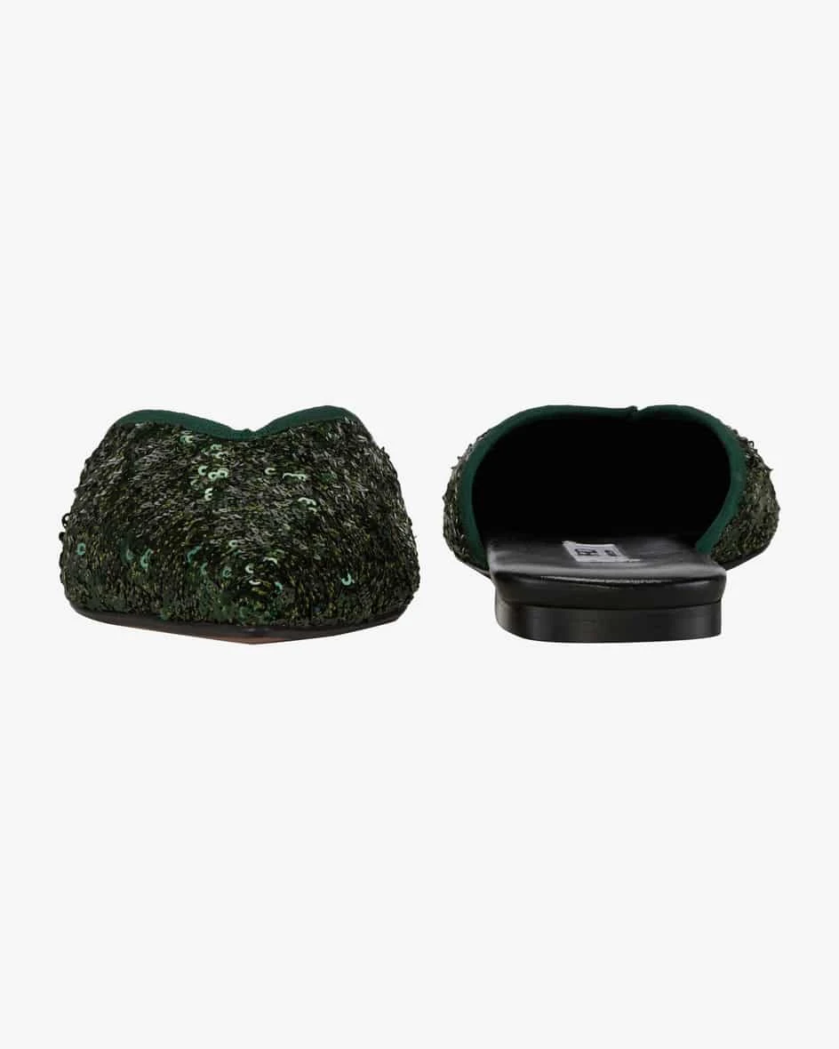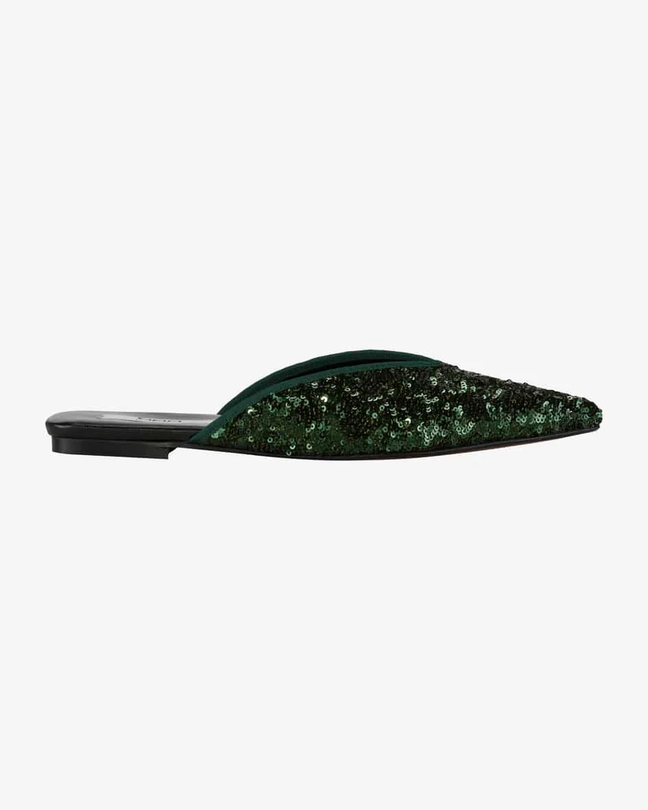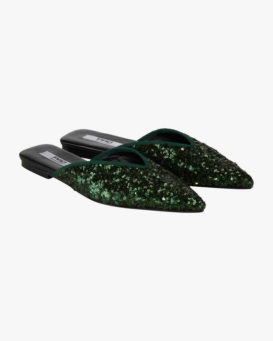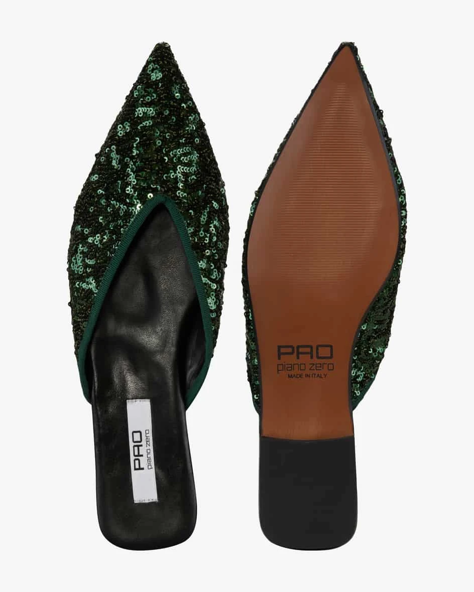 Mules für Damen von Pao in Grün. Das Modell avanciert dank der feinen Material-