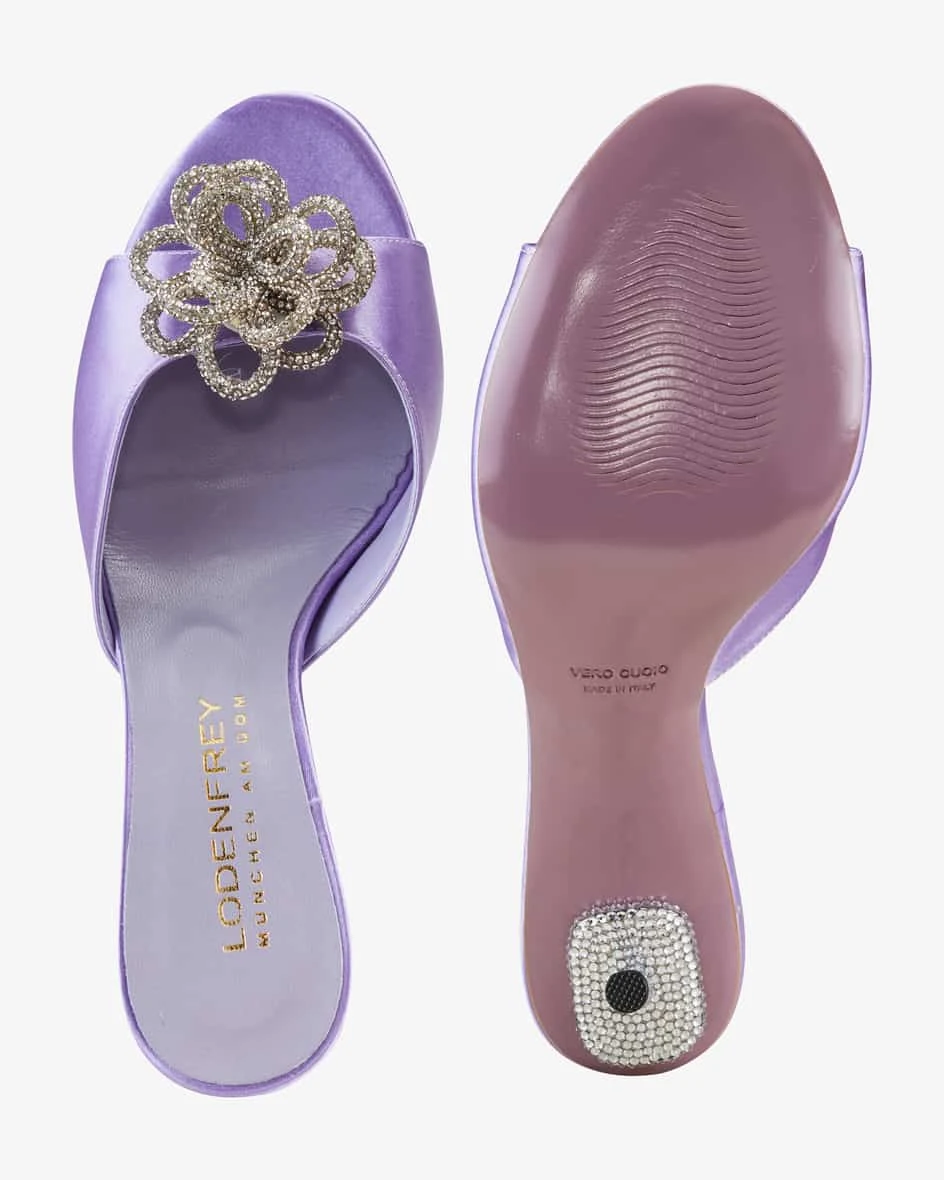 Mules für Damen von LODENFREY in Flieder und Silber. Das