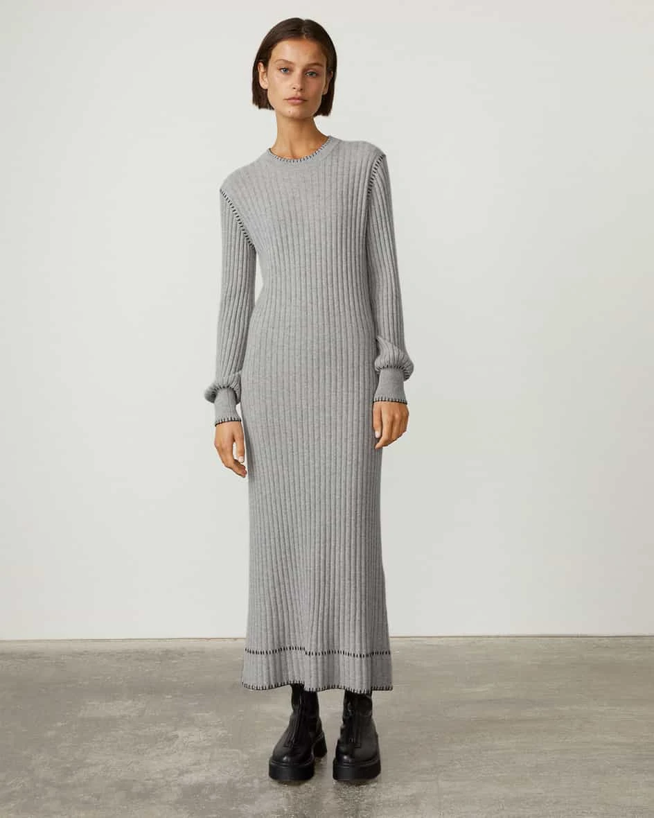 Nette Cashmere-Kleid für Damen von Lisa Yang in Hellgrau. Das Modell überzeugt