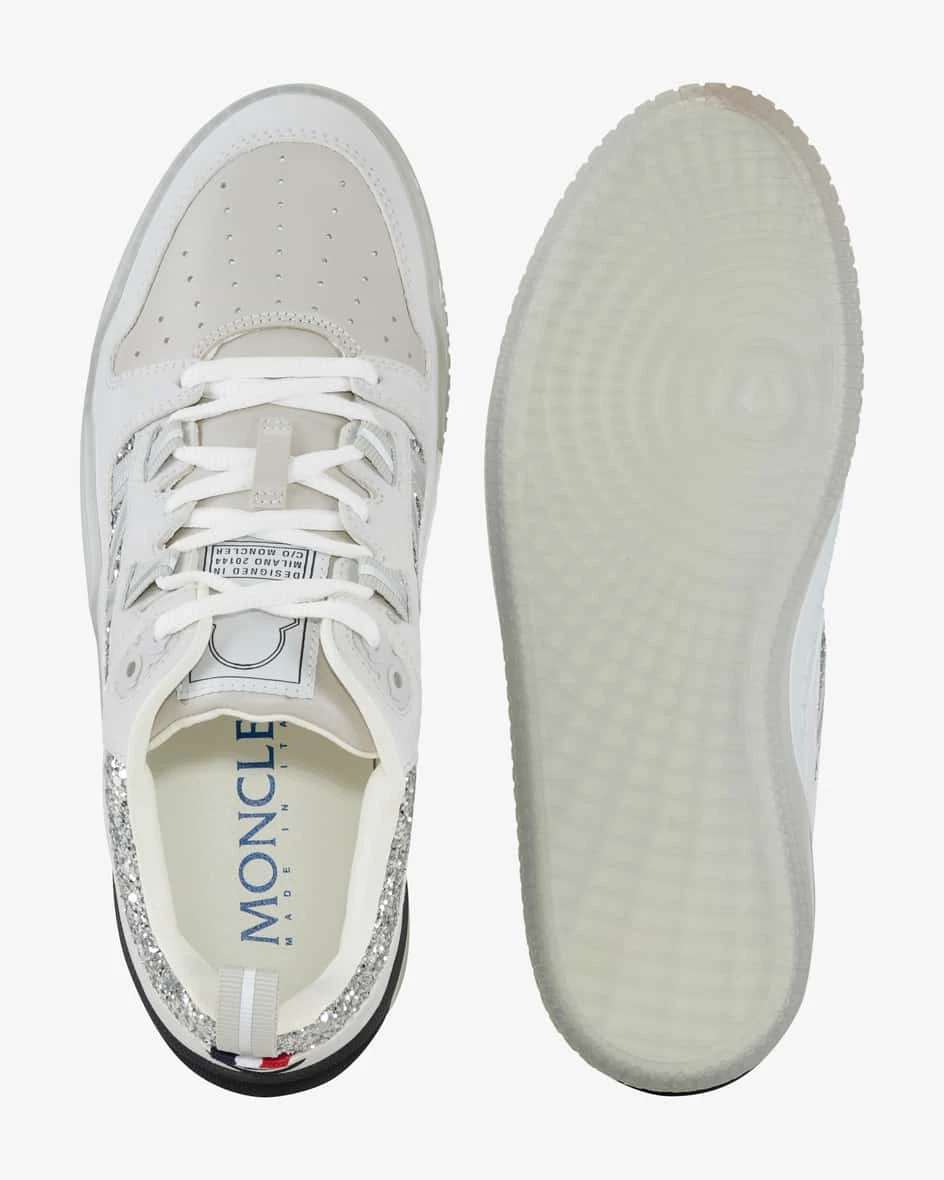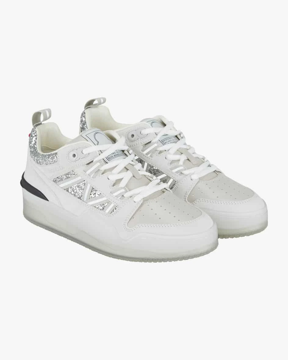 Pivot Low Sneaker für Damen von Moncler in Hellgrau, Silber und Taupe. Das