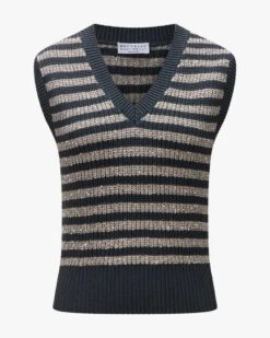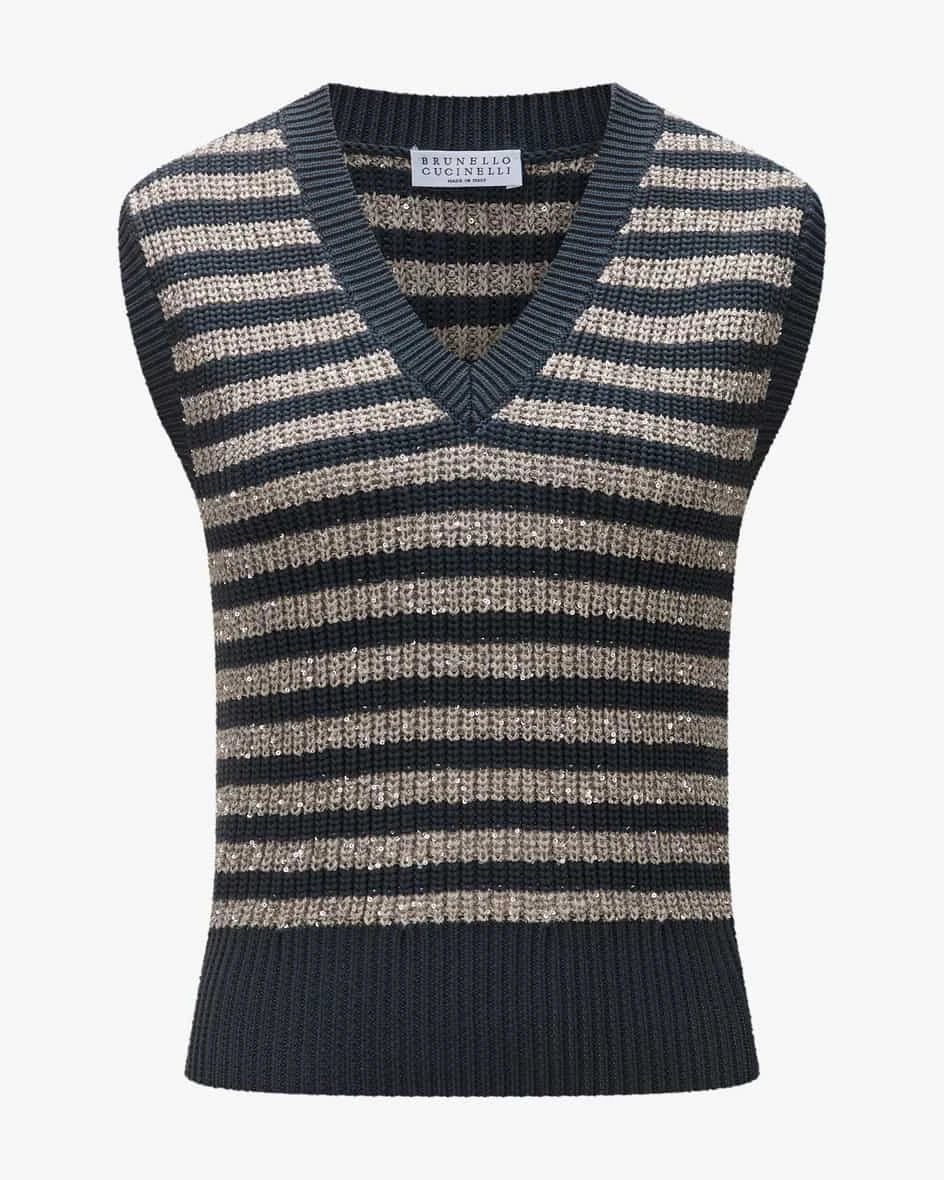 Pullunder für Damen von Brunello Cucinelli in Blaugrau und Silber. Das Modell