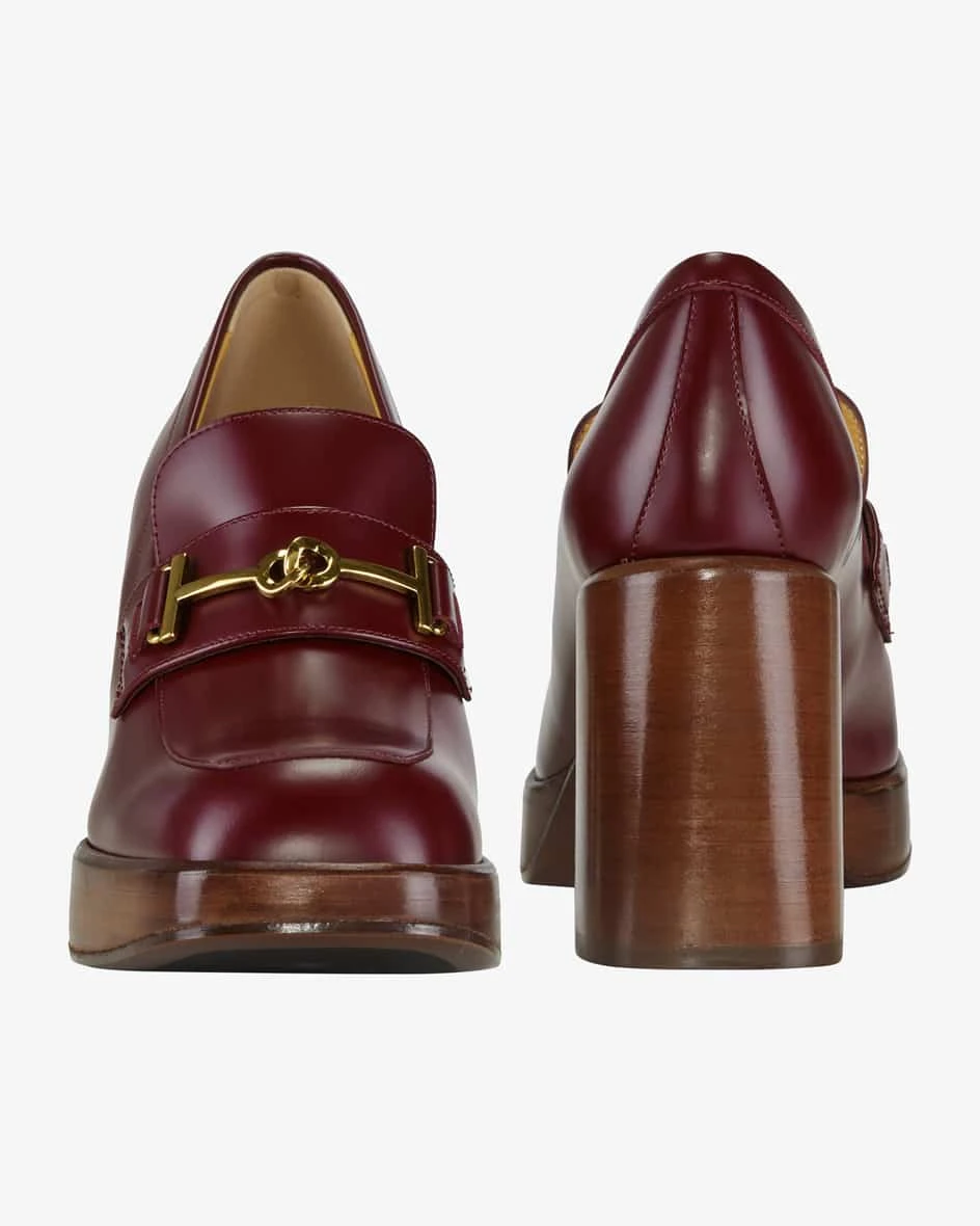 hochwertigen Glattleder-Qualität sowie dem markanten Blockabsatz in eleganter