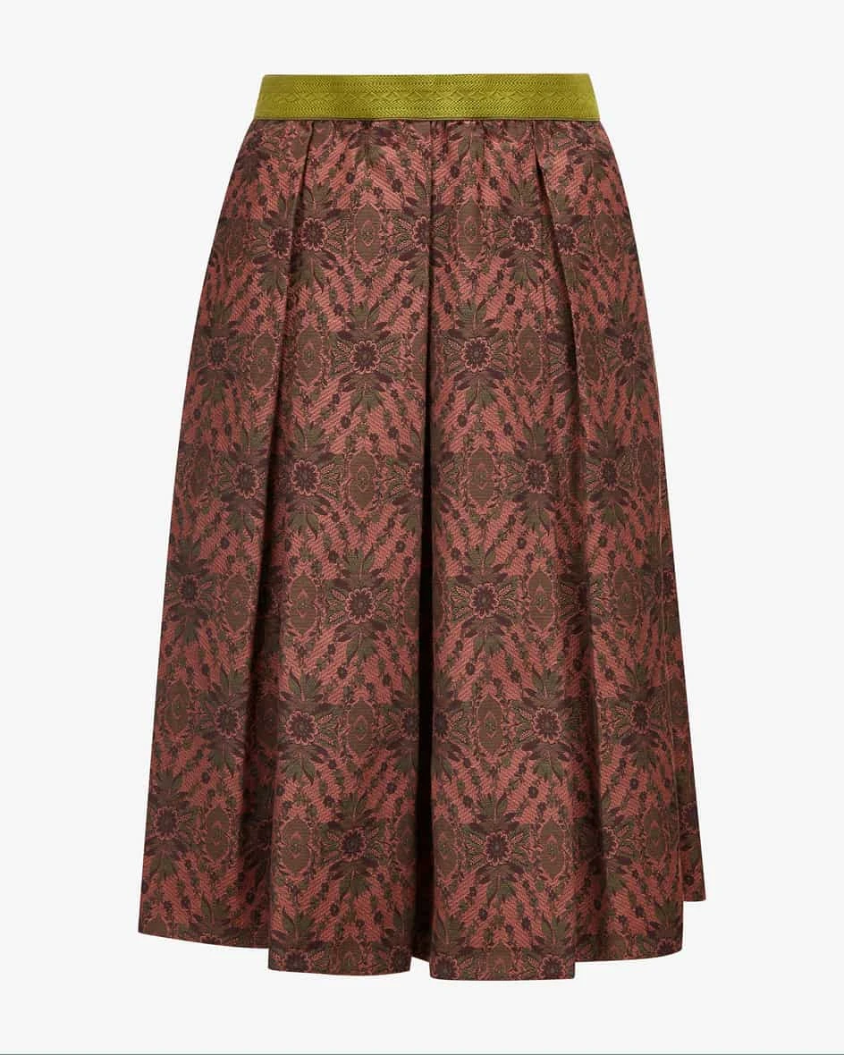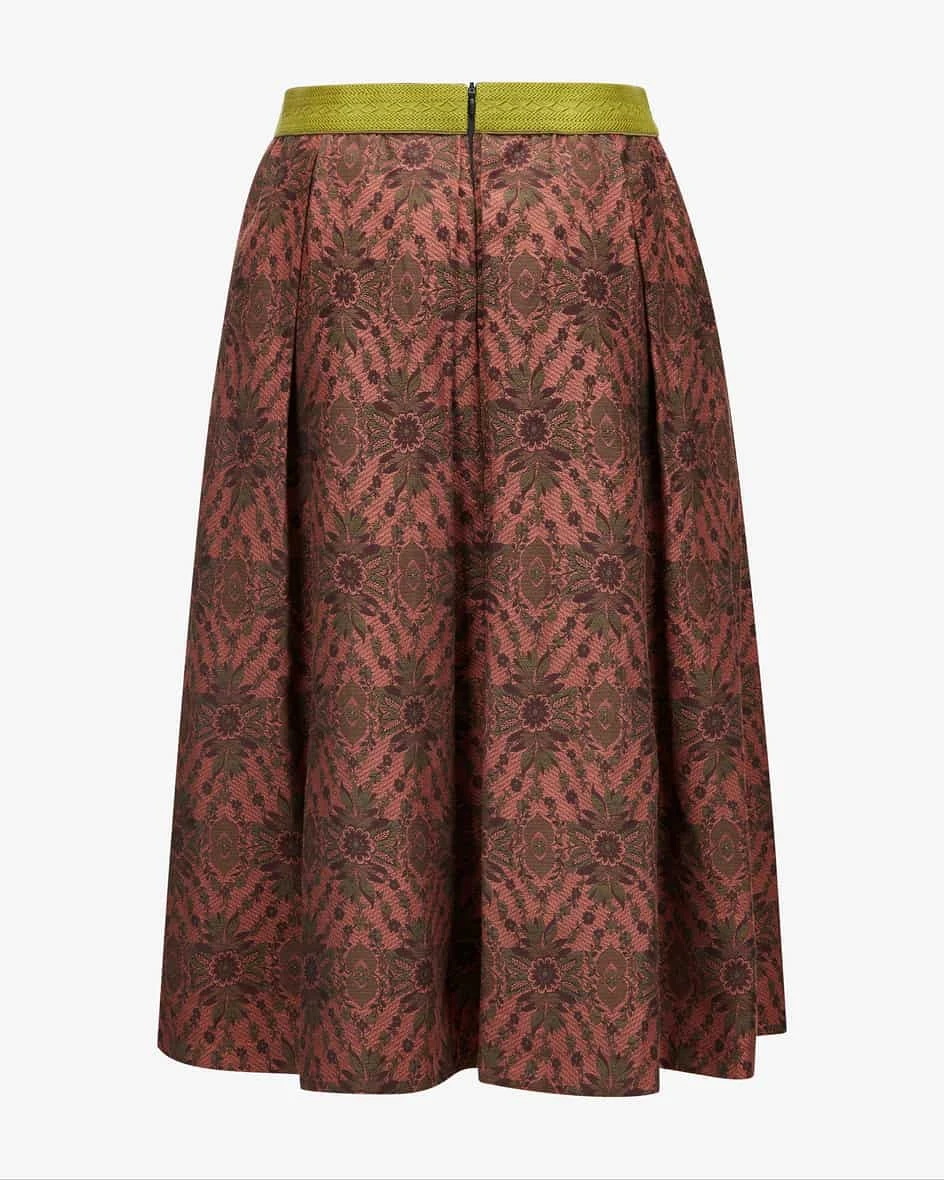Sabia Trachtenrock für Damen von Kinga Mathe in Hellrot und Oliv. Dank des