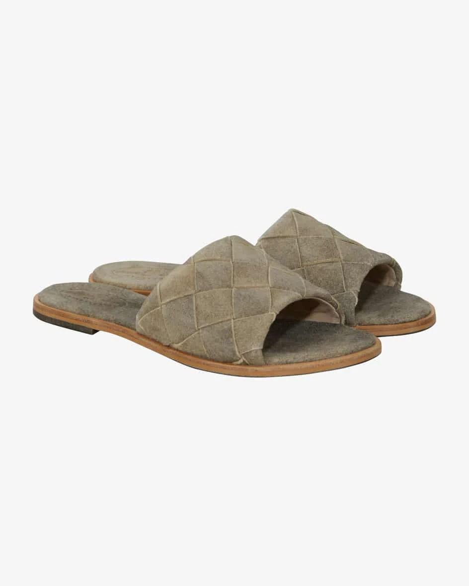 Sandalen für Damen von Dirndl + Bua in Stein. Aus hochwertigem Leder gefertigt,