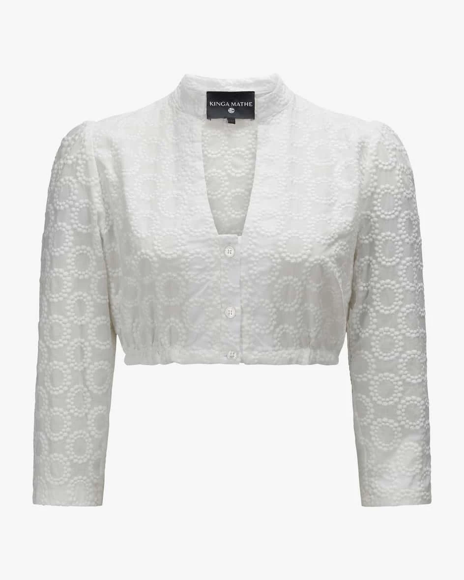 Sandy Dirndlbluse für Damen von Kinga Mathe in Weiß. Das Langarm-Modell aus