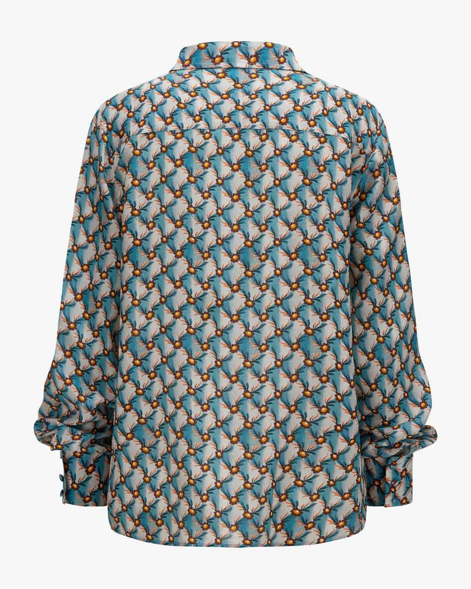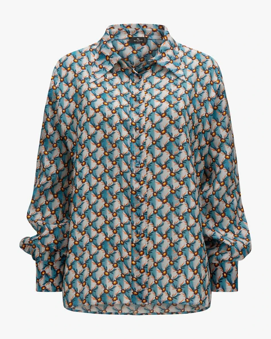 Seiden-Hemdbluse für Damen von Etro in Blau und Orange. Das Modell aus semi-
