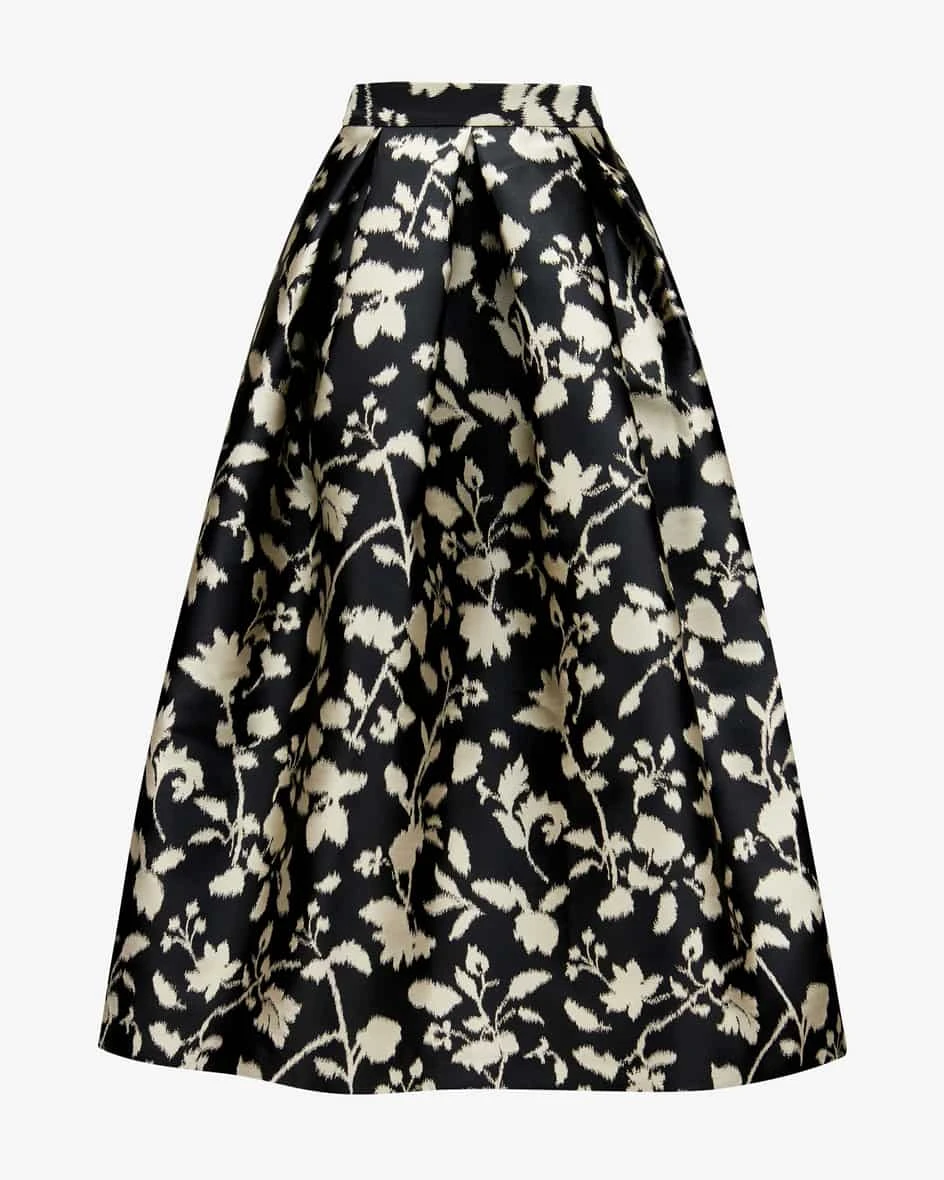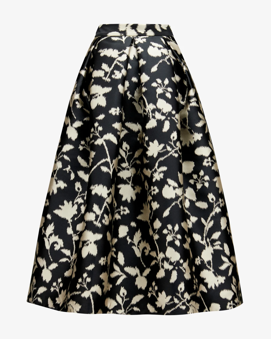 Kellerfalten sorgt der Rock für einen schwungreifen Fall, während das Allover-