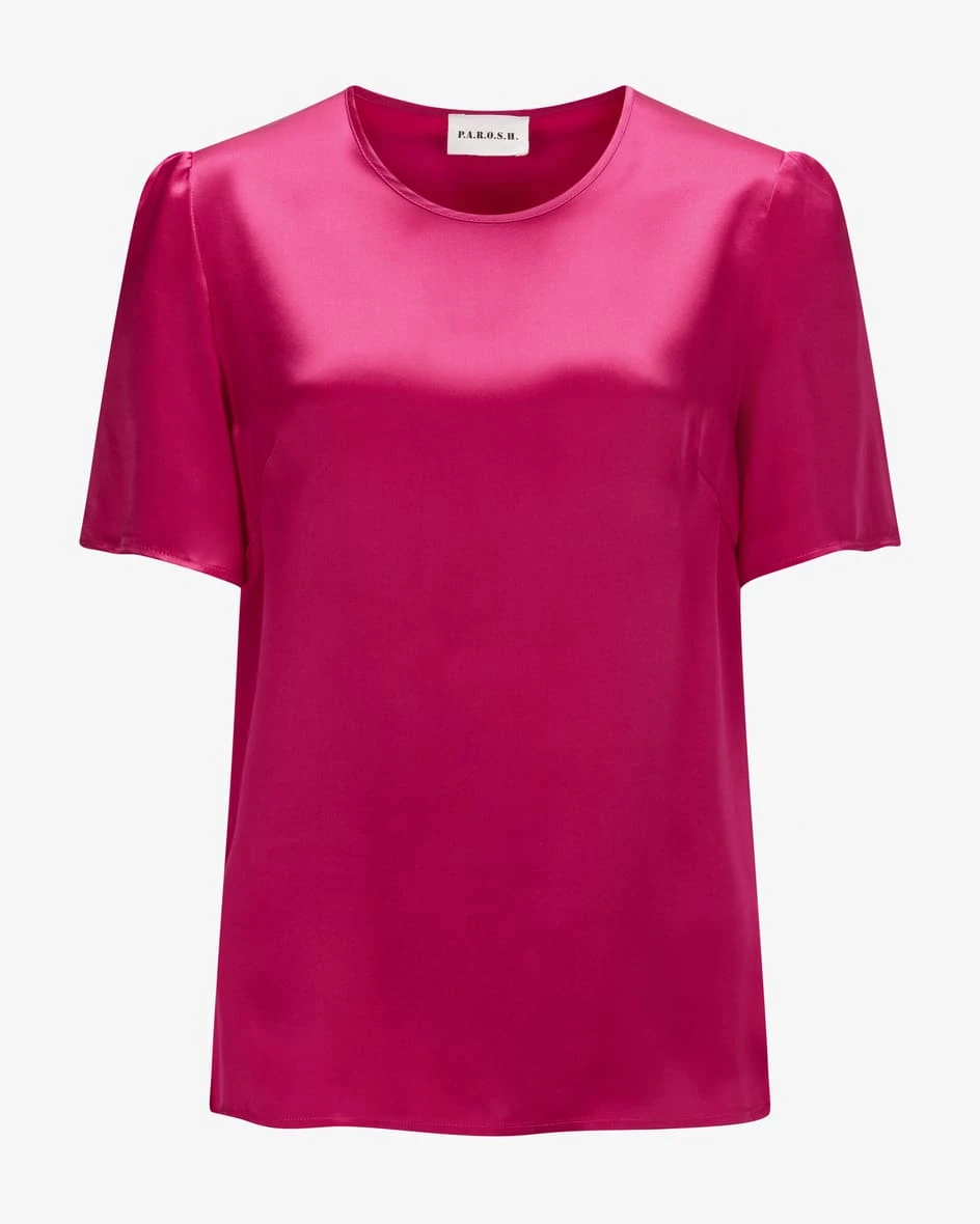 Stella Seiden-Blusenshirt für Damen von Parosh in Fuchsia. Das Modell aus