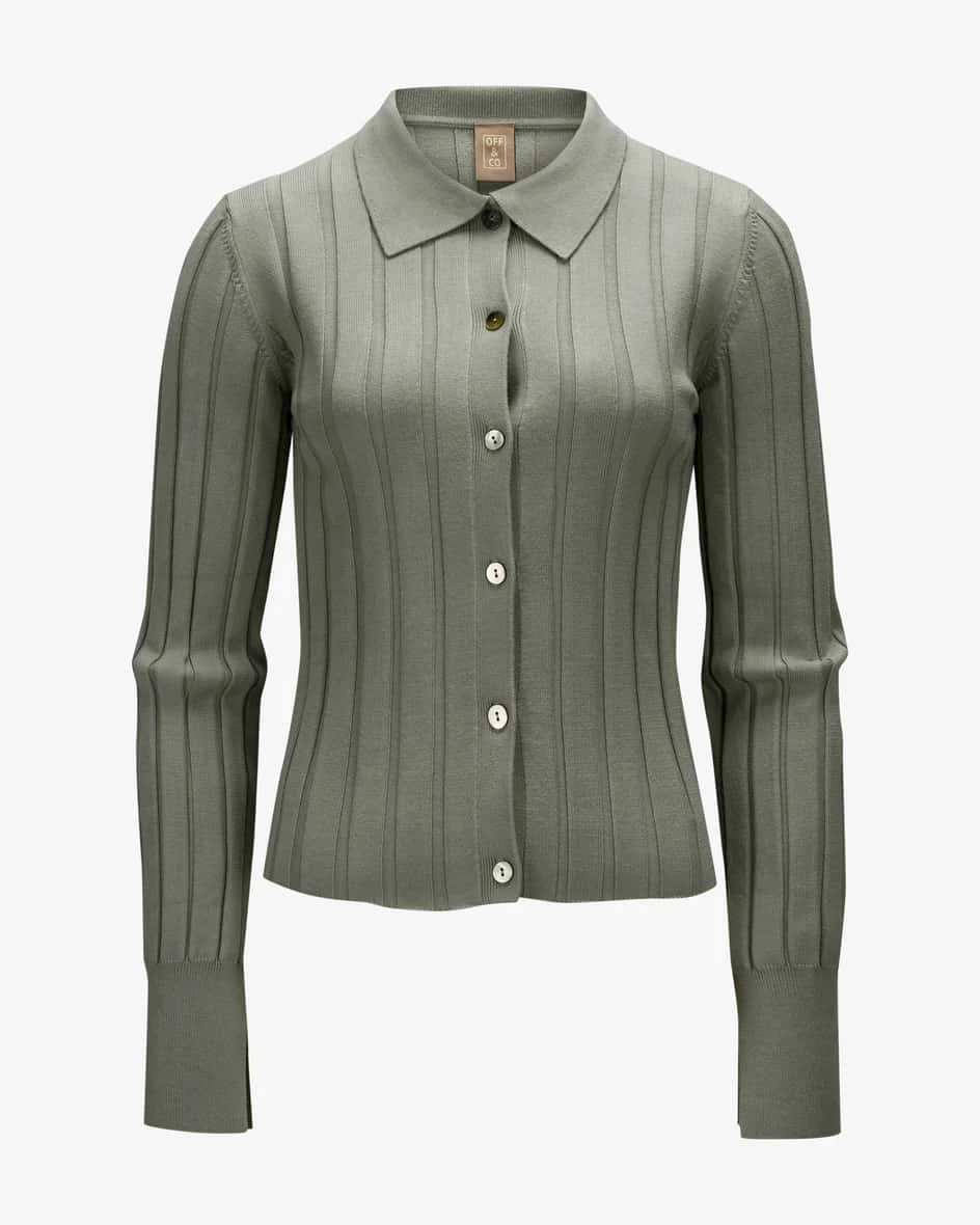 Strickjacke für Damen von OFF & CO in Salbei. Das schmale Modell besticht dank