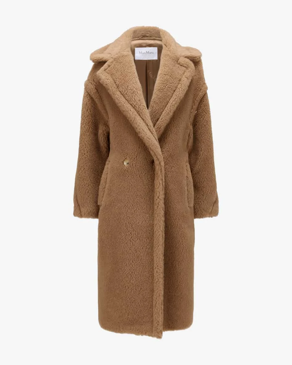Teddy Wollmantel für Damen von Max Mara in Camel. Die Verarbeitung aus feinem