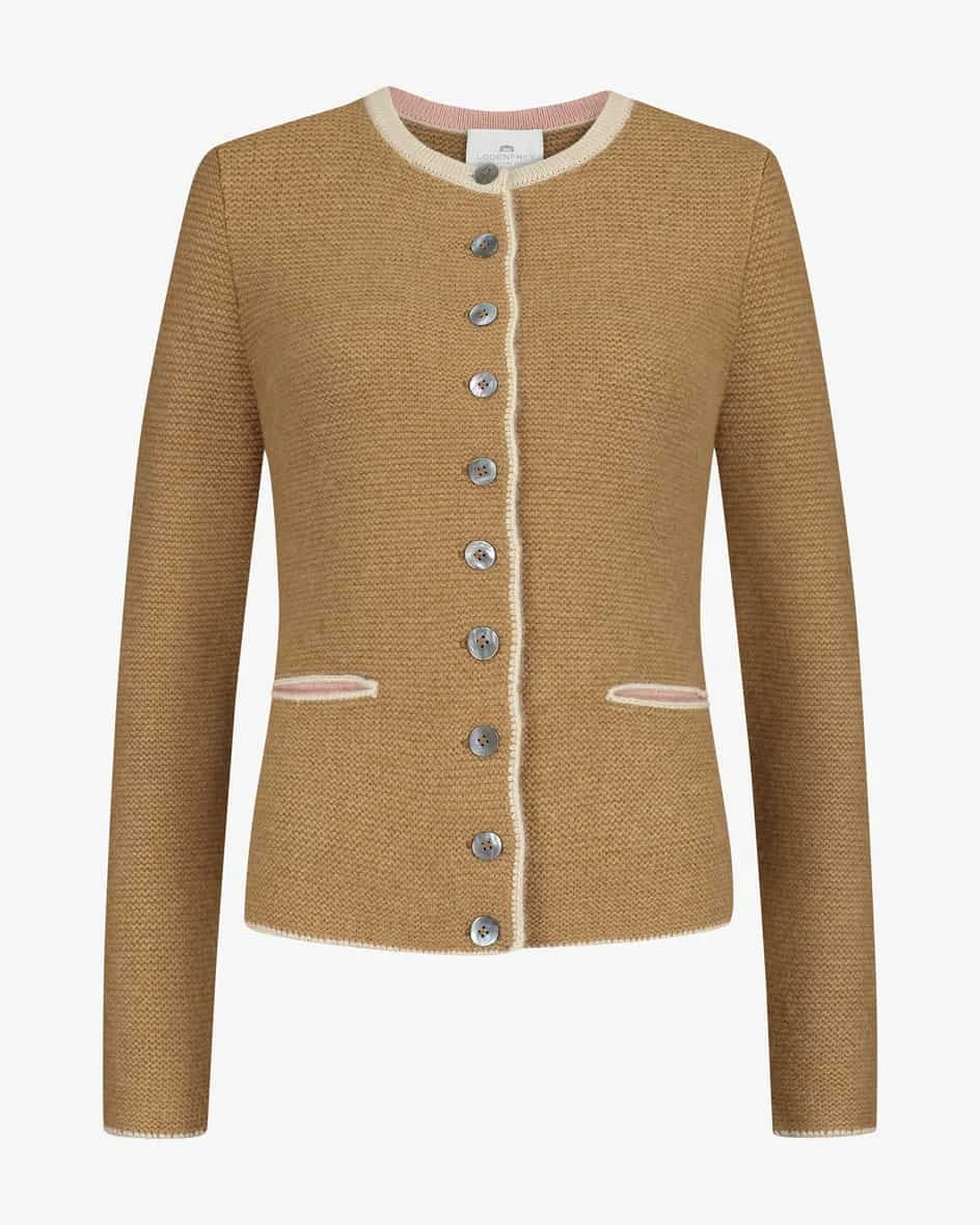 Trachten-Cashmere-Strickjacke für Damen von LODENFREY München 1842 in Camel.