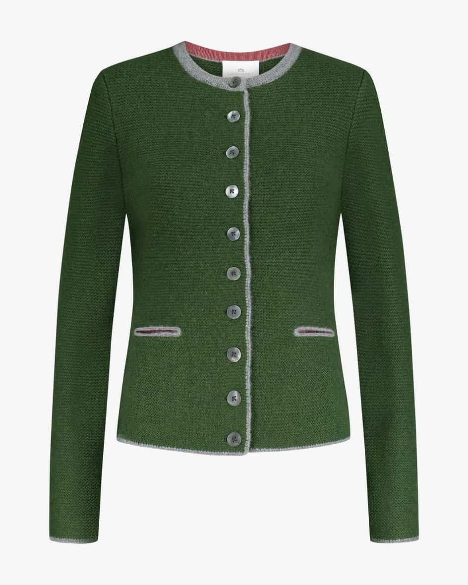 Trachten-Cashmere-Strickjacke für Damen von LODENFREY München 1842 in Grün.