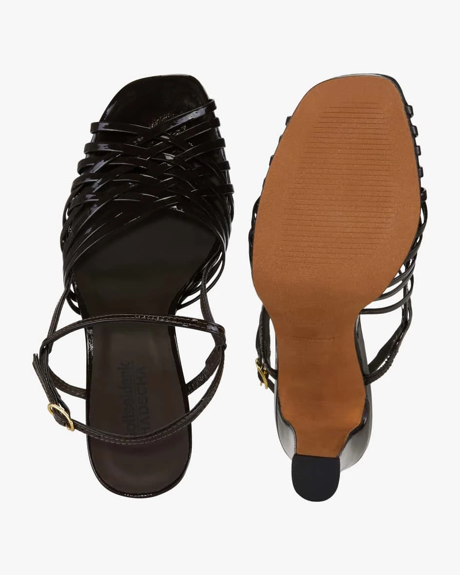 Lackleder-Verarbeitung sowie die filigranen Riemen sorgen für eine edle Optik,