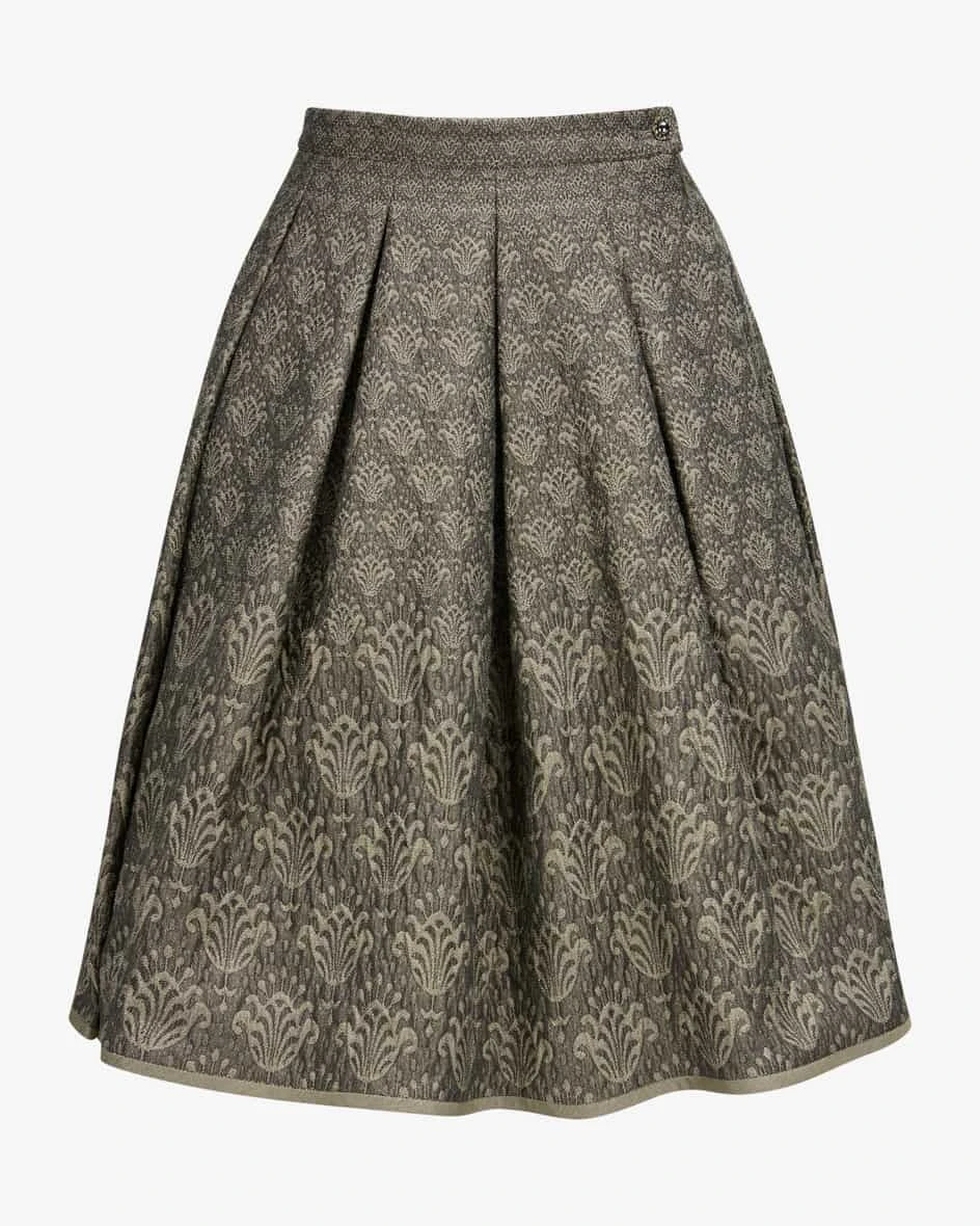 Trachtenrock für Damen von Mothwurf in Taupe und Gold. Das ausgestellte,