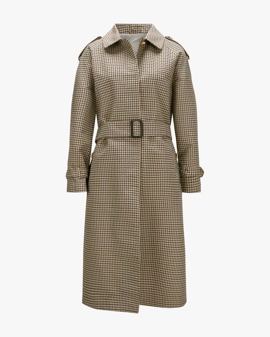 klassische Details einen zeitlosen Trenchcoat-Look kreieren.