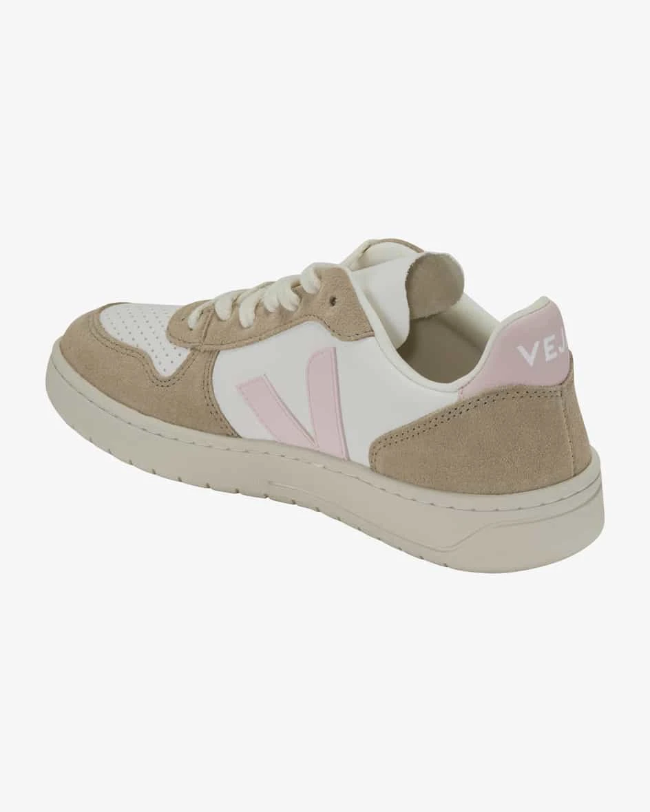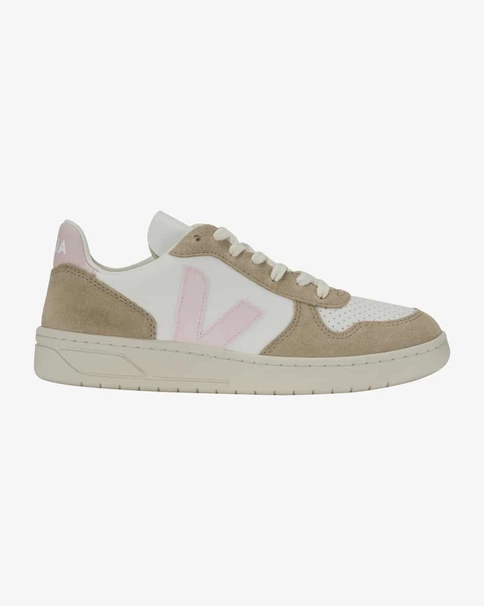 V-10 Sneaker für Damen von Veja in Weiß, Hellbraun und Rosa. Nachhaltige und