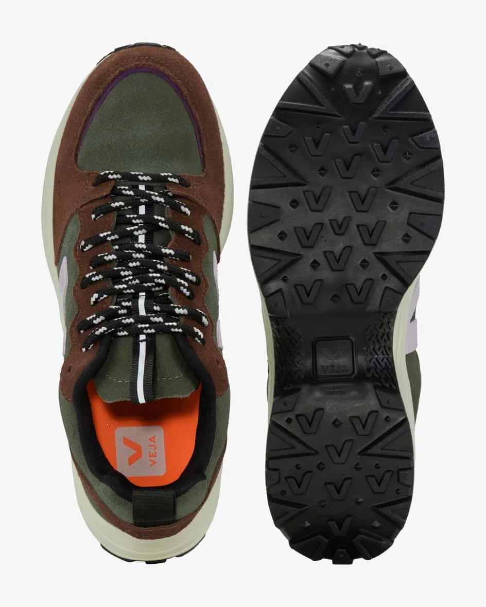 Venturi Suede Sneaker für Damen von Veja in Oliv, Braun und Violett. Nachhaltige
